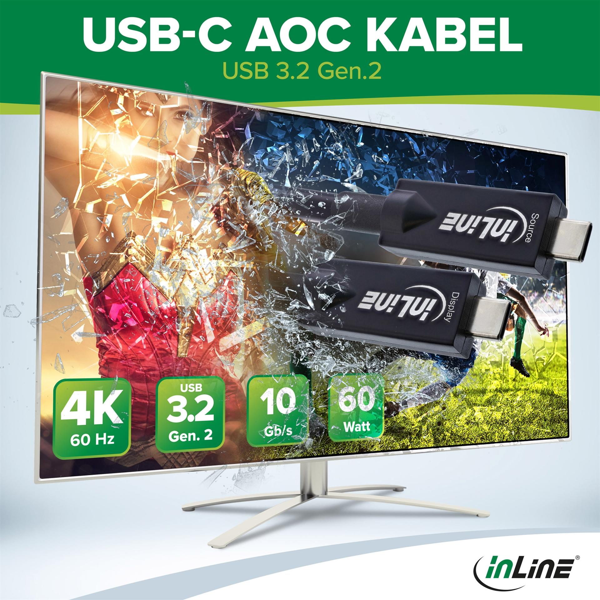 InLine® USB 3.2 Gen.2 AOC Kabel, USB Typ-C Stecker/Stecker, schwarz, 10m (35799A)