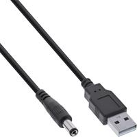 InLine® USB DC Stromadapterkabel, USB A Stecker zu DC 5,5x2,50mm Hohlstecker, schwarz, 1m (26806J)