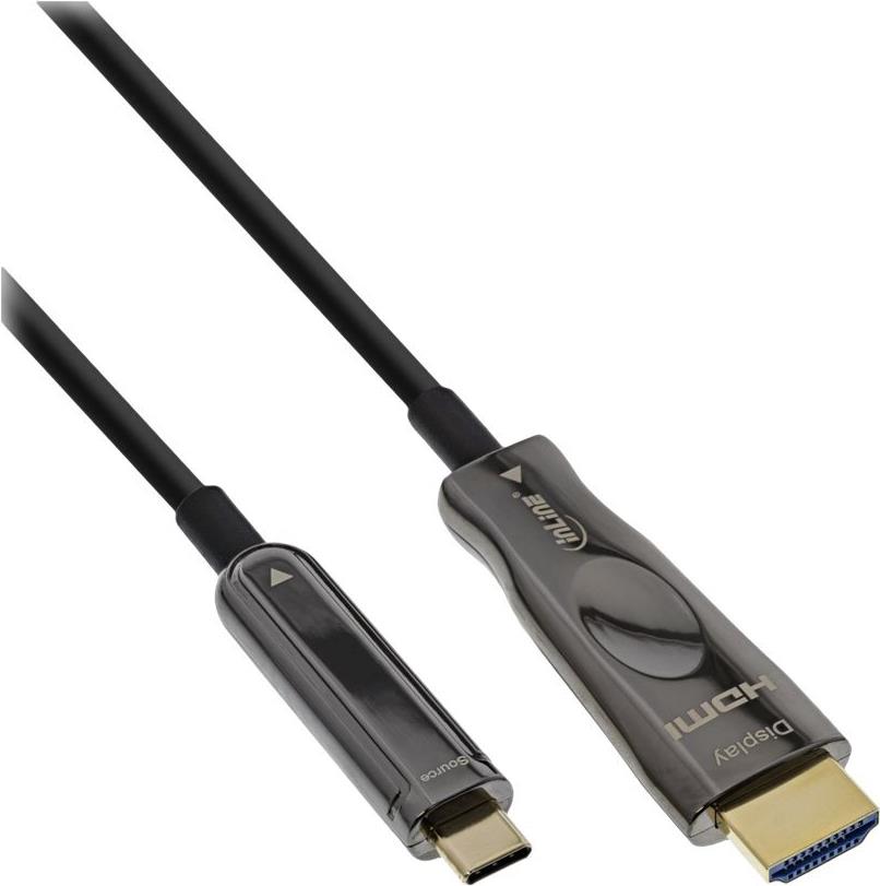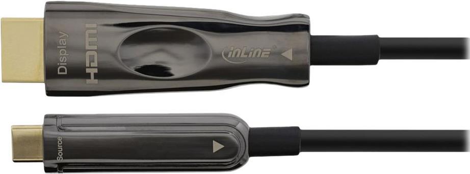 InLine - Adapterkabel - 24 pin USB-C männlich zu HDMI männlich - 50,0m - Hybrid Kupfer/Kohlefaser - Schwarz - Active Optical Cable (AOC), rund, unterstützt 4K 60 Hz (3840 x 2160), unterstützt 4K 60 Hz (4096 x 2160) (64250A)