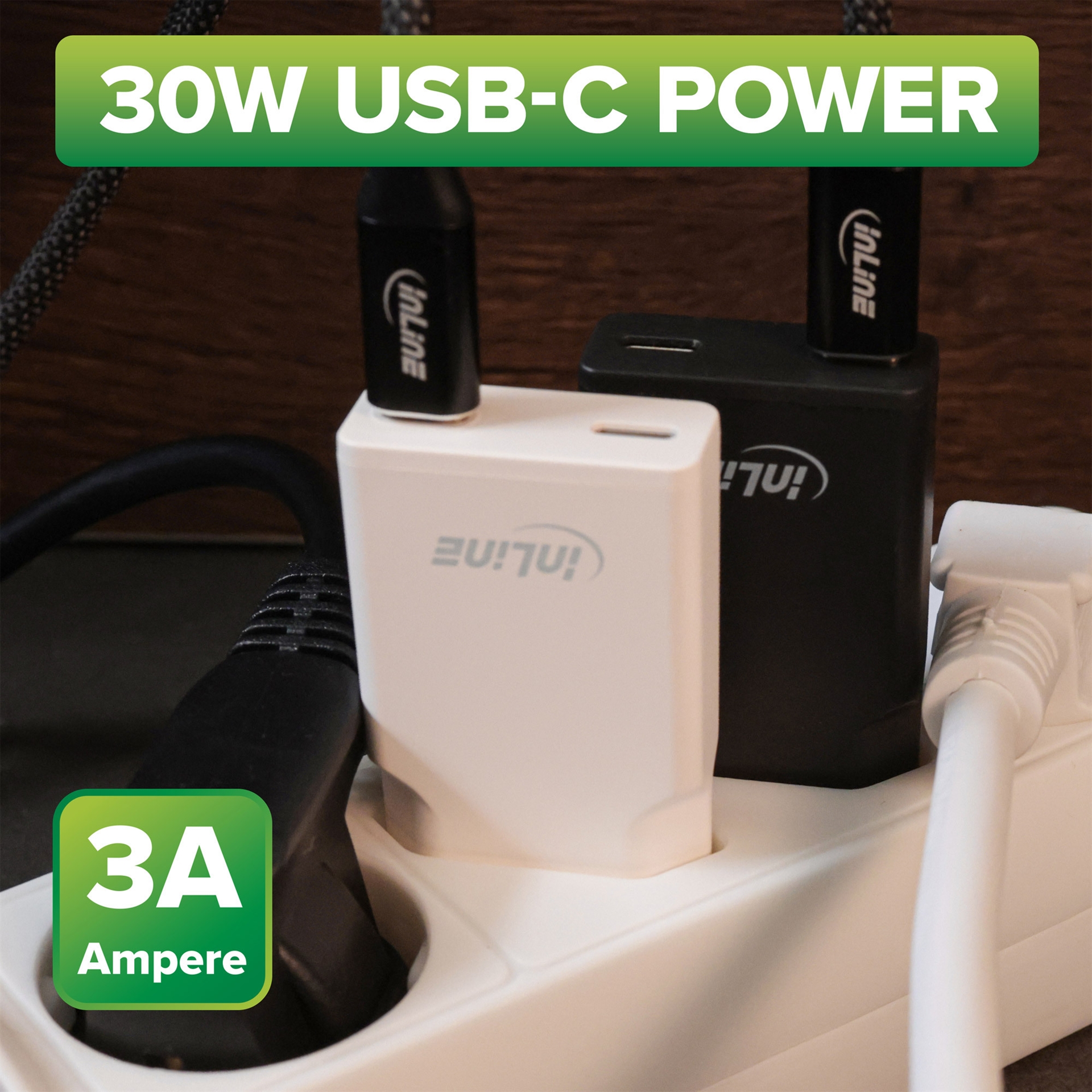 Das ultrakompakte InLine® USB Netzteil Ladegerät mit GaN-Halbleitertechnologie bietet schnelles und sicheres Laden über zwei USB-C-Anschlüsse. Dank Power Delivery (PD) und Programmable Power Supply (PPS) Technologie wird maximale Effizienz erreicht. Mit einer Leistung von 30W sind Ihre Geräte im Handumdrehen wieder aufgeladen. Ideal für Smartphones, Tablets und andere USB-C-Geräte – perfekt für zu Hause, im Büro oder unterwegs.• USB-Netzteil/Ladegerät