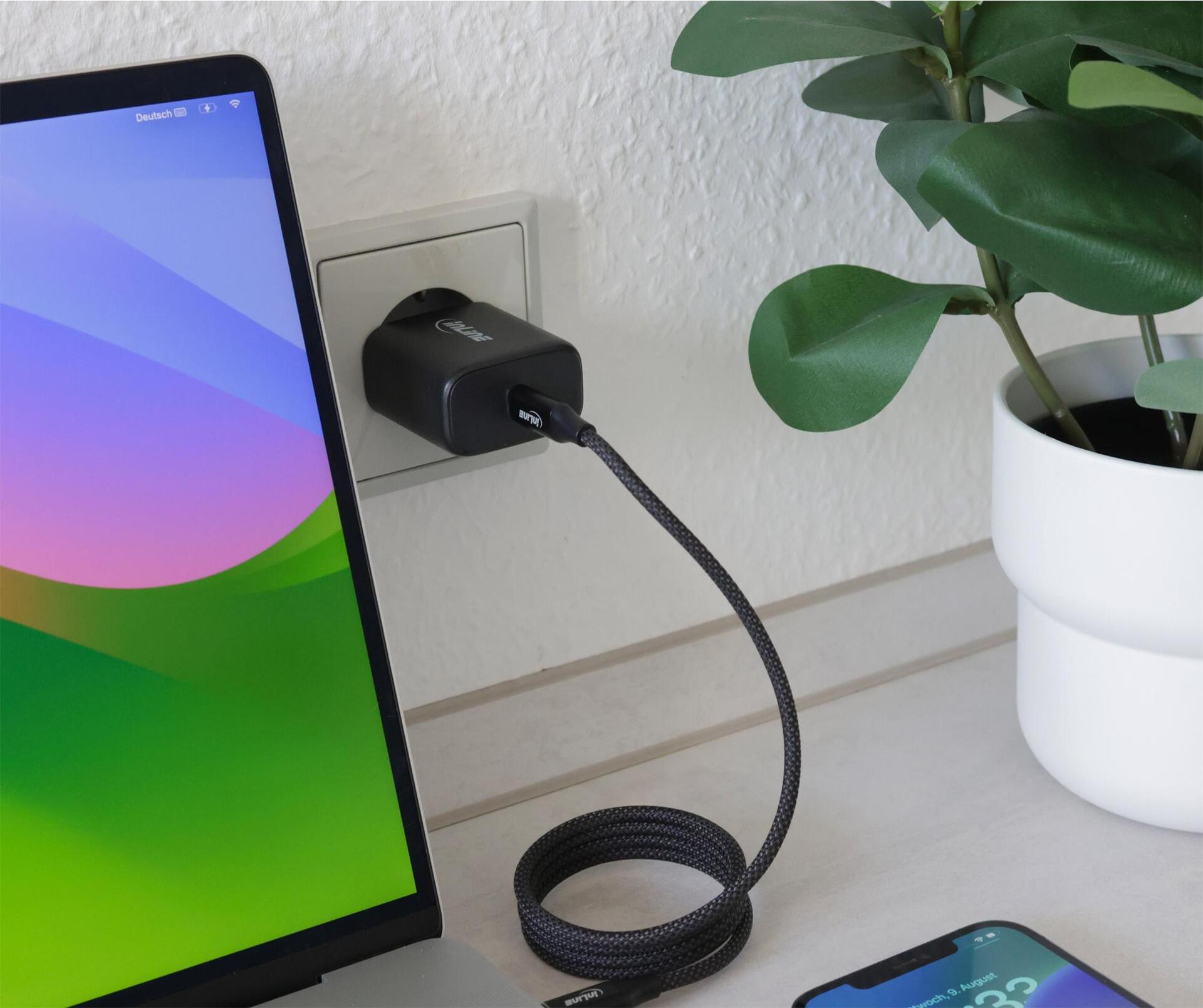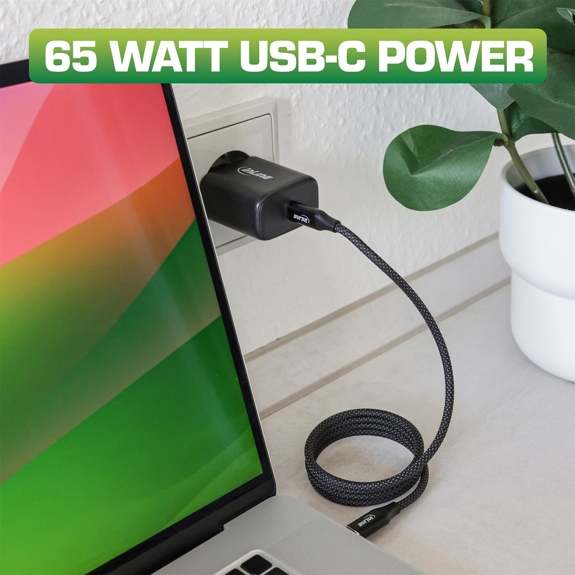 Erleben Sie das leistungsstarke und kompakte 65W GaN-Ladegerät mit 1x USB-C Anschluss - die perfekte Lösung für schnelles und effizientes Laden! Dank der GaN (Galliumnitrid) Technologie ist dieses Netzteil hocheffizient und ermöglicht eine bessere Leistung bei gleichzeitig kleinerer Bauform. Die Elektronen werden bis zu 1.000x effizienter geleitet als bei herkömmlichen Silizium-Halbleitern, was zu einer geringeren Wärmeentwicklung und weniger Energieverlust führt. Das 65W GaN-Ladegerät ist USB PD 3.0 mit PPS kompatibel und bietet verschiedene Ausgangsoptionen. PPS (Programmable Power Supply) ermöglicht es, den Strom und die Spannung, die über den USB-C Anschluss geliefert werden, dynamisch anzupassen, d.h. die Stromversorgung kann flexibel auf die Anforderungen des angeschlossenen Geräts reagieren und die optimale Leistung liefern.• Eingangsspannung: AC 100-240V• Eingangswechselstromfrequenz: 50/60 Hz, 1,5 A• Ausgangsspannung: 3,3-20,0 V DC• Ausgangsstrom: max. 4,05 A• Ausgangsleistung: 65,0 W• Durchschnittliche Effizienz im Betrieb: 86,49 %• Effizienz bei geringer Last (10%): 79,58 %• Leistungsaufnahme bei Nulllast: 0,03 W• USB-C PD Ausgang: 5,0V / 3,0A oder 9,0V / 3,0A oder 12,0V / 3,0A oder 15,0V / 3,0A oder 20,0V / 3,25A (max. 65,0W) / PPS Ausgang: 3,3-11,0V / 4,05A oder 3,3-16,0V / 3,0A (max. 48,0W)• USB PD 3.0 kompatibel• Abmessungen: 83,3x46x28,4mmProdukttext