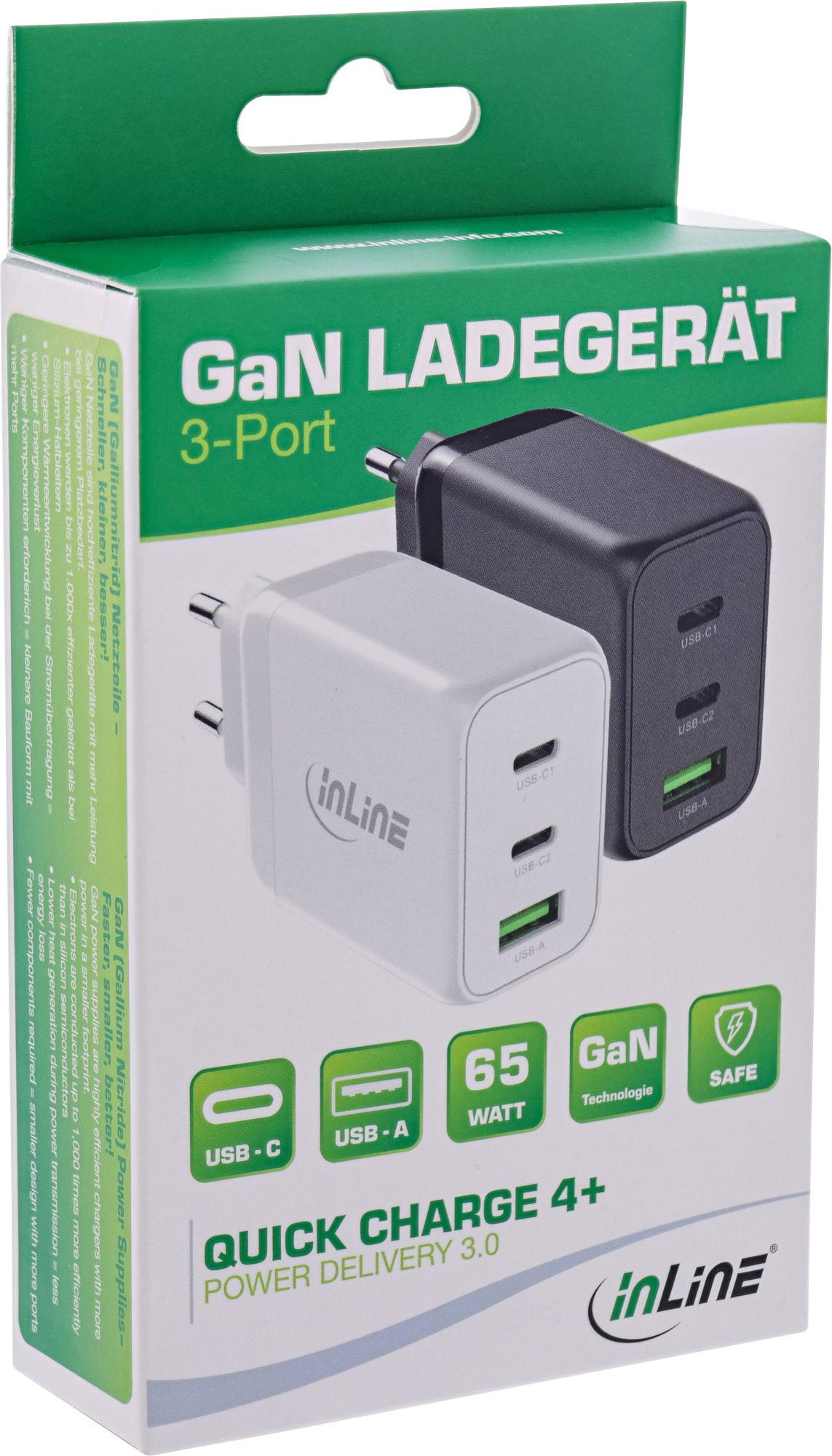 Erleben Sie das leistungsstarke und kompakte 65W GaN-Ladegerät mit 2x USB-C Anschluss und 1x USB-A Anschluss - die perfekte Lösung für schnelles und effizientes Laden mehrerer Geräte gleichzeitig! Dank der GaN (Galliumnitrid) Technologie ist dieses Netzteil hocheffizient und ermöglicht eine bessere Leistung bei gleichzeitig kleinerer Bauform. Die Elektronen werden bis zu 1.000x effizienter geleitet als bei herkömmlichen Silizium-Halbleitern, was zu einer geringeren Wärmeentwicklung und weniger Energieverlust führt. Das 65W GaN-Ladegerät unterstützt außerdem Power Delivery 3.0 und Quickcharge 4+ und bietet verschiedene Ausgangsoptionen.