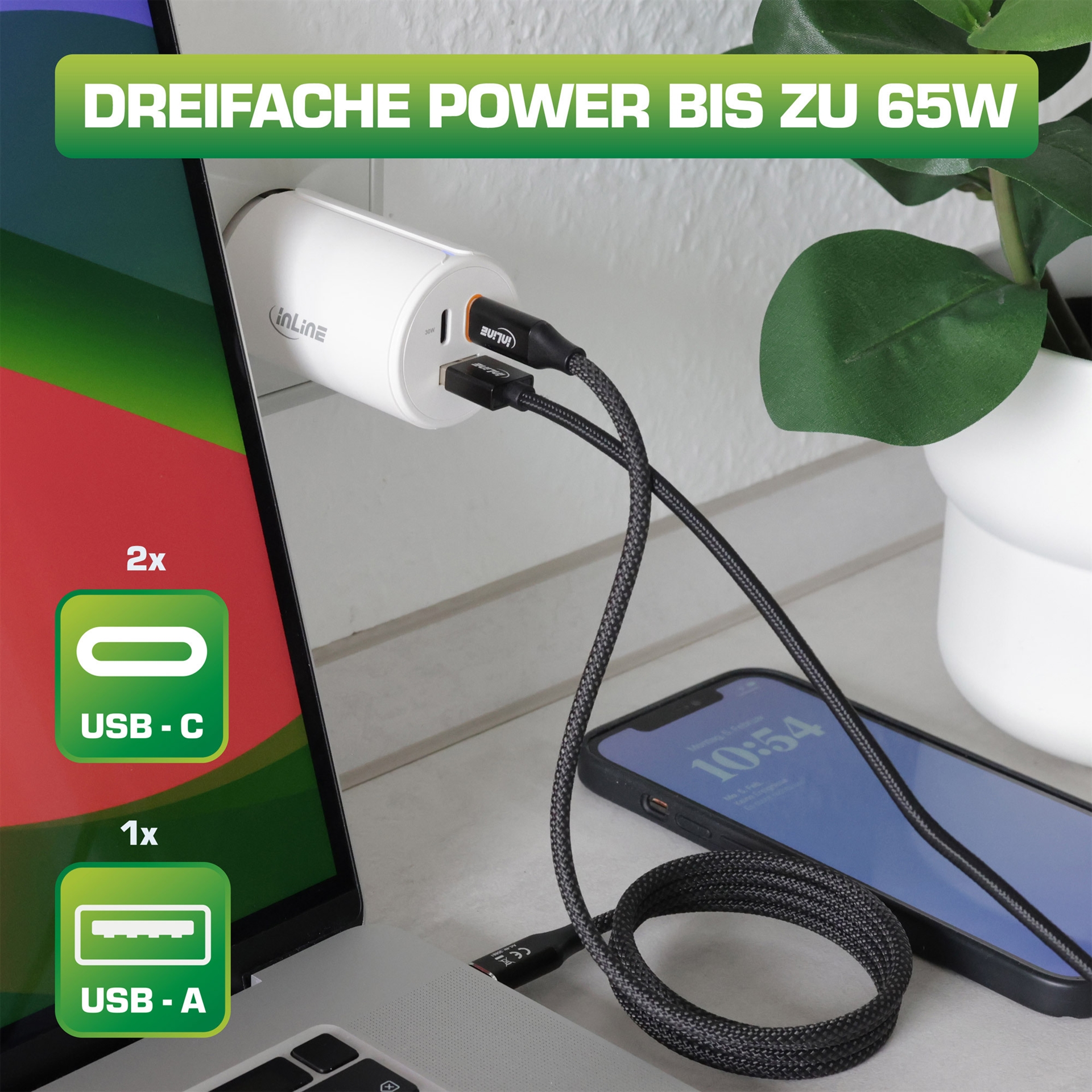 Das InLine® USB PD Netzteil eignet sich ideal dafür, in Mehrfachsteckdosen benutzt zu werden, da durch die Bauform keine anderen Schutzkontakt-Buchsen versperrt werden!