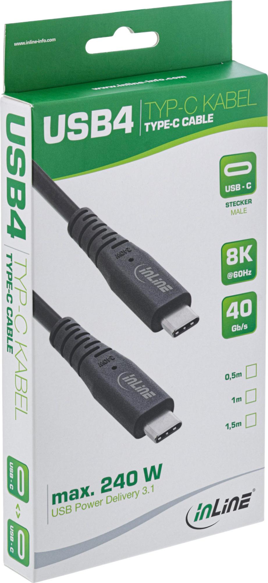 InLine® USB4 Kabel, USB Typ-C Stecker/Stecker, PD 240W, 8K60Hz, TPE schwarz, 2m (35902I)
