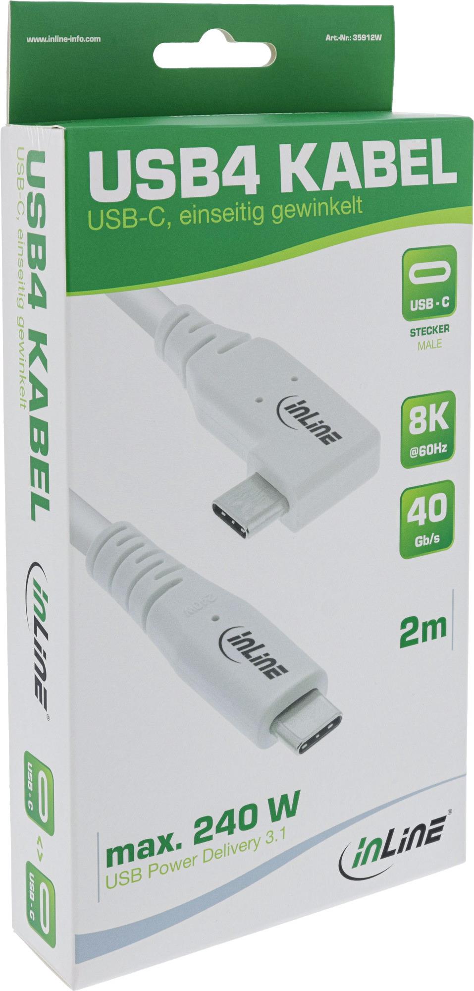 InLine USB4 Kabel - USB-C - einseitig gewinkelt - PD 240W - 8K60Hz - TPE - weiß - 2m - Strom/Netzteil - 2 m (35912W)