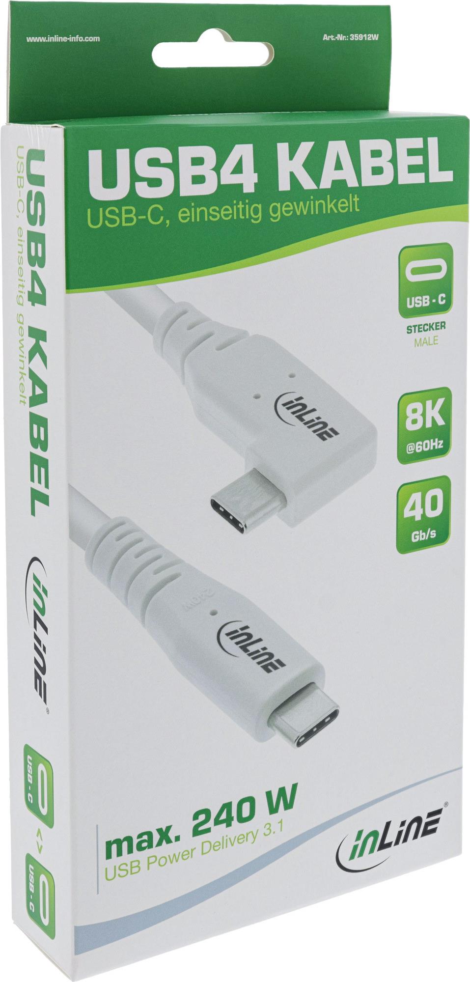 InLine USB4 Kabel - USB-C - einseitig gewinkelt - PD 240W - 8K60Hz - TPE - weiß - 1,5m - Strom/Netzteil - 1,5 m (35914W)
