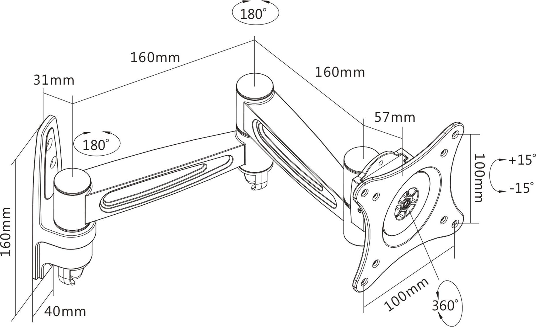InLine Wandhalterung - für Monitore bis 68cm (27") - max. 15kg - 2-teiliger Arm (23105D)