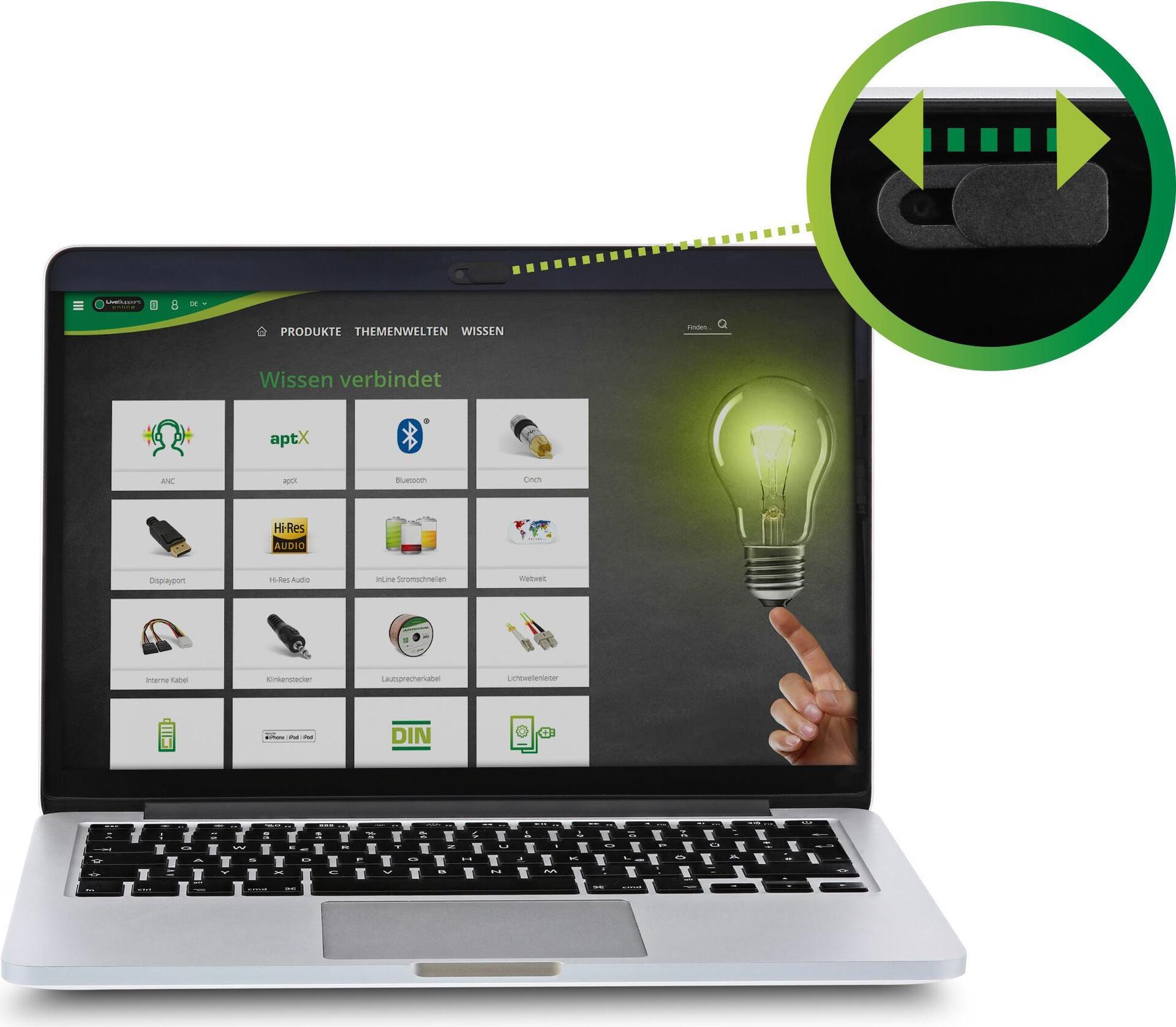 Der Slider kann einfach mit einem Finger zur Seite geschoben werden und schon können Sie mit Ihren Freunden und Geschäftspartnern videochatten, nach dem Beenden einfach den Slider wieder zurückschieben.• Webcam-Slider, passend für Notebook-Webcams und ähnliche