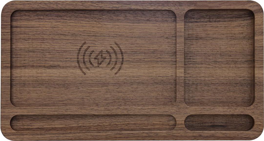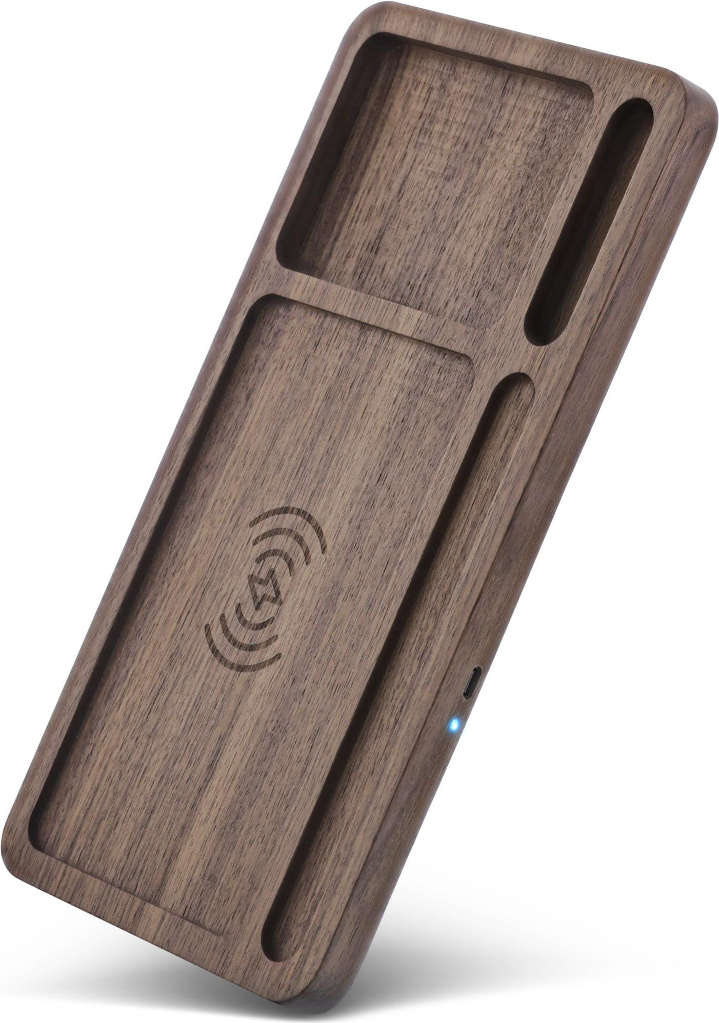 Mit dem WoodCharge Organizer können Sie kompatible Smartphones komfortabel und kabellos aufladen. Zusätzlich bieten die drei Ablageflächen praktischen Stauraum, um Ihren Schreibtisch ordentlich zu halten. Das hochwertige Gehäuse aus echten Walnussholz verleiht jedem Produkt Einzigartigkeit und setzt zugleich dekorative Akzente.• Eingangsspannung: DC5V / 3,0A, DC9V / 2,0A, DC12V / 1,5A