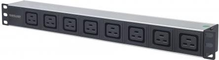Intellinet - Stromverteilungseinheit (Rack - einbaufähig) - WS 110-250 V - Eingabe, Eingang IEC 60320 C20 - Ausgangsbuchsen: 8 (IEC 60320 C19) - 1U - 48,3 cm (19") - 3 m (163613)
