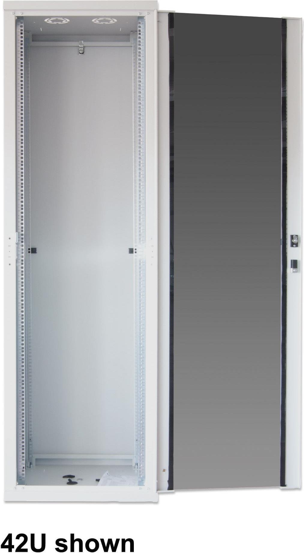 Leistungsmerkmale Antistatisch, abschließbare Rückwand, Flat Pack, Kabeleingang, Zylinderschloss, abschließbare Seitenteile, gehärtete Glastür