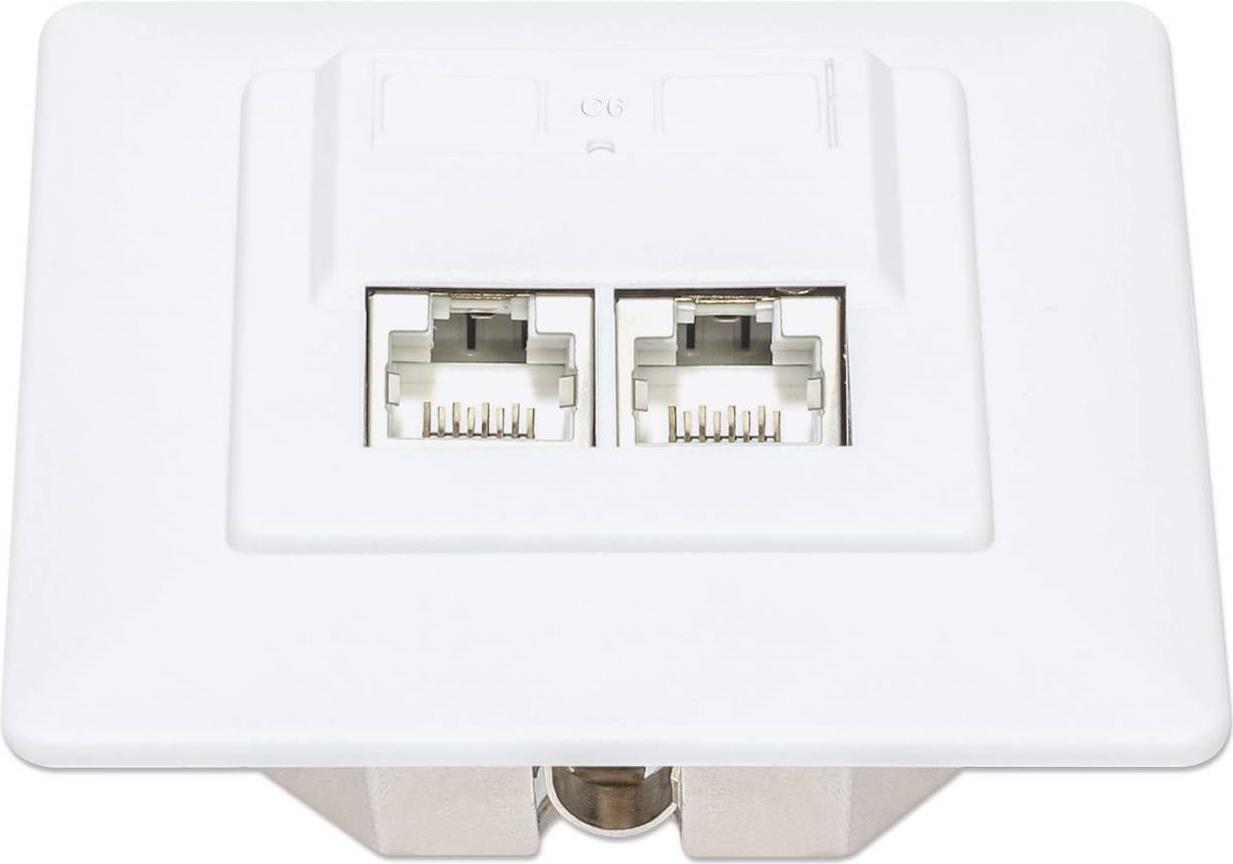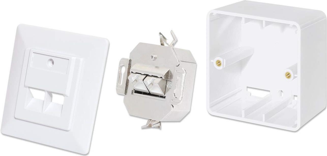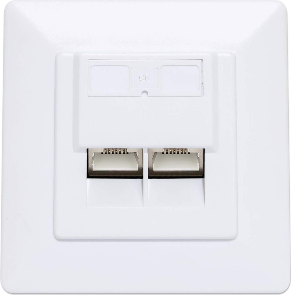 Intellinet - Wandplatte - Cat6a 10G - 2 Netzwerksteckdosen - RAL 9003, Signal White |