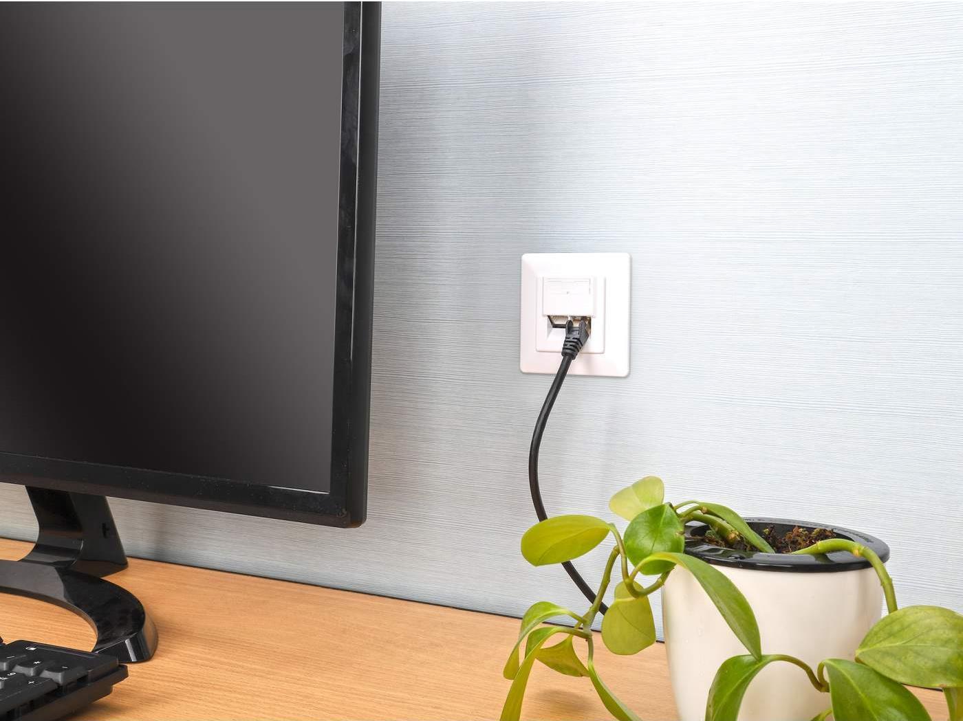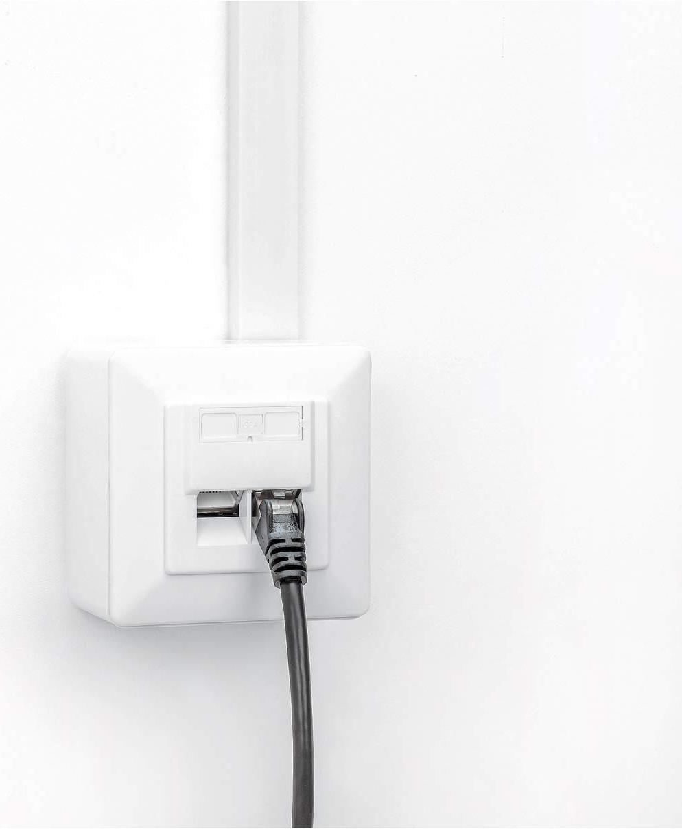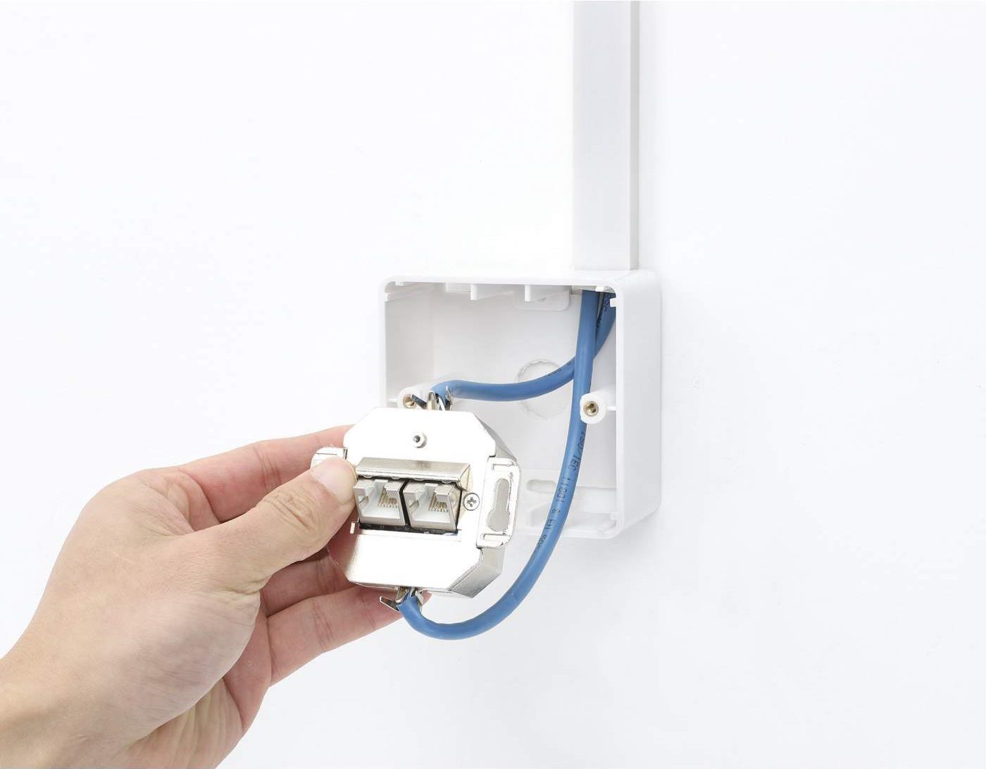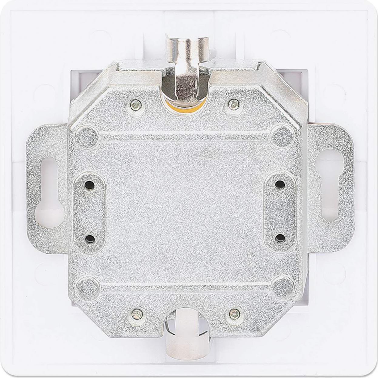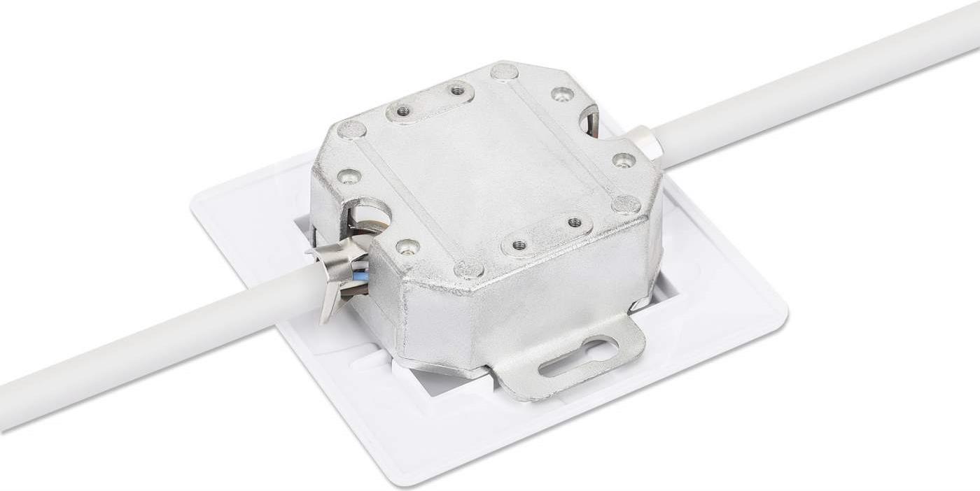 Cat6a Wandplatte - Unterputz mit 2 Ports und Frontplatte für Unterputzverkabelungsprojekte. Die 2-Port Cat6a 10G geschirmte RJ45 Wandplatte von Intellinet Network Solutions ist die Unterputzdose, die Sie für Ihre nächste Netzwerkverkabelung benötigen. Die saubere Frontplatte deckt die um 40° abgewinkelten Steckdosenbuchsen ab, die dazu beitragen, dass die Kabel nah an der Wand verlegt werden und so ein professionelleres Aussehen erhalten. Die Cat6a-Ports dieser Wandplatte unterstützen 10G-Datenübertragungen mit Frequenzen von bis zu 500 MHz und alle PoE-Anwendungen bis hin zu PoE++.