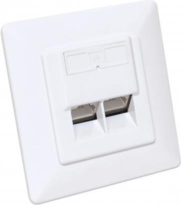 Intellinet - Wandplatte - Cat6a 10G - mit Beschriftungsfenster - RJ 45 - abgewinkelt - 2 Netzwerksteckdosen - RAL 9003, Signal White (771917)