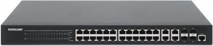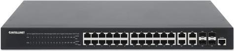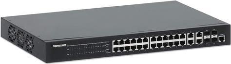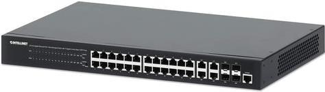 INTELLINET 24-Port Gigabit Ethernet PoE+ Web-Managed Switch mit 4 Gigabit Kombo-Base-T/SFP-Ports IEEE 802.3at/af Power over Ethernet (PoE+/PoE)-konform, 370 W, Endspan, 48,30cm (19") Rackmount (561426)