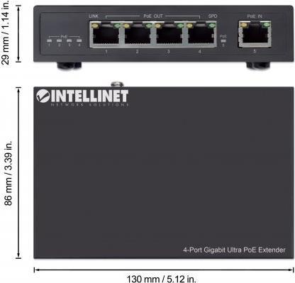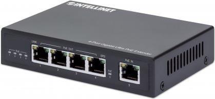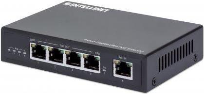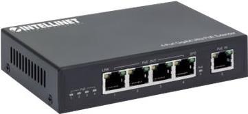 4 x Ethernet 10Base-T/100Base-TX/1000Base-T (PoE-Ausgang) - RJ-45 weiblich - 30 W 1 x Ethernet 10Base-T/100Base-TX/1000Base-T (Eingang) - RJ-45 weiblich |
