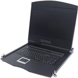 LCD-Bildschirm mit 17"-Bildschirmdiagonale zur 19"-Rackmontage, 1 HE, modulares System und Tastatur mit deutschem Layout.