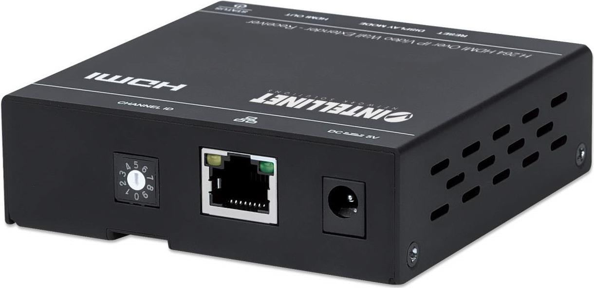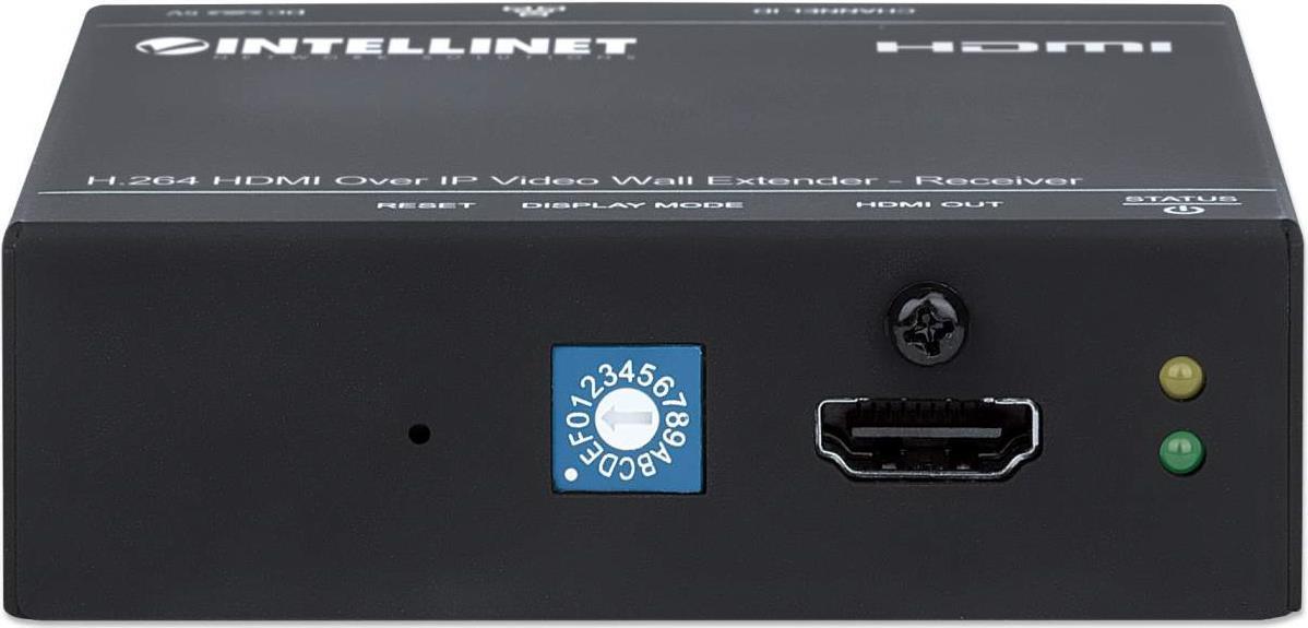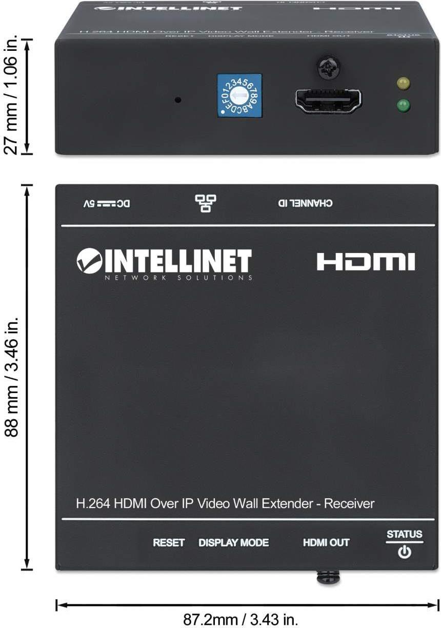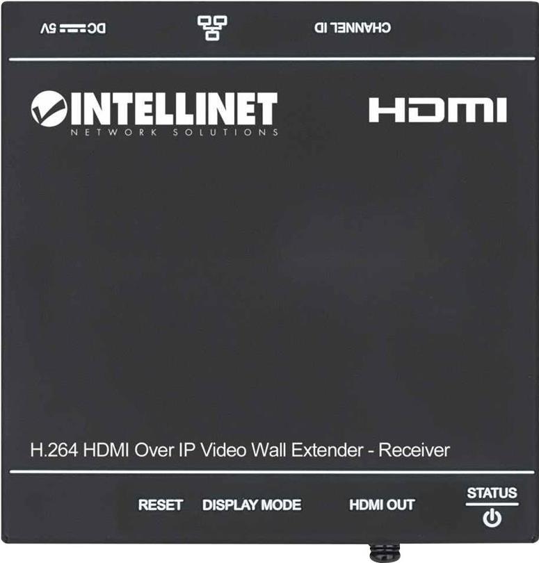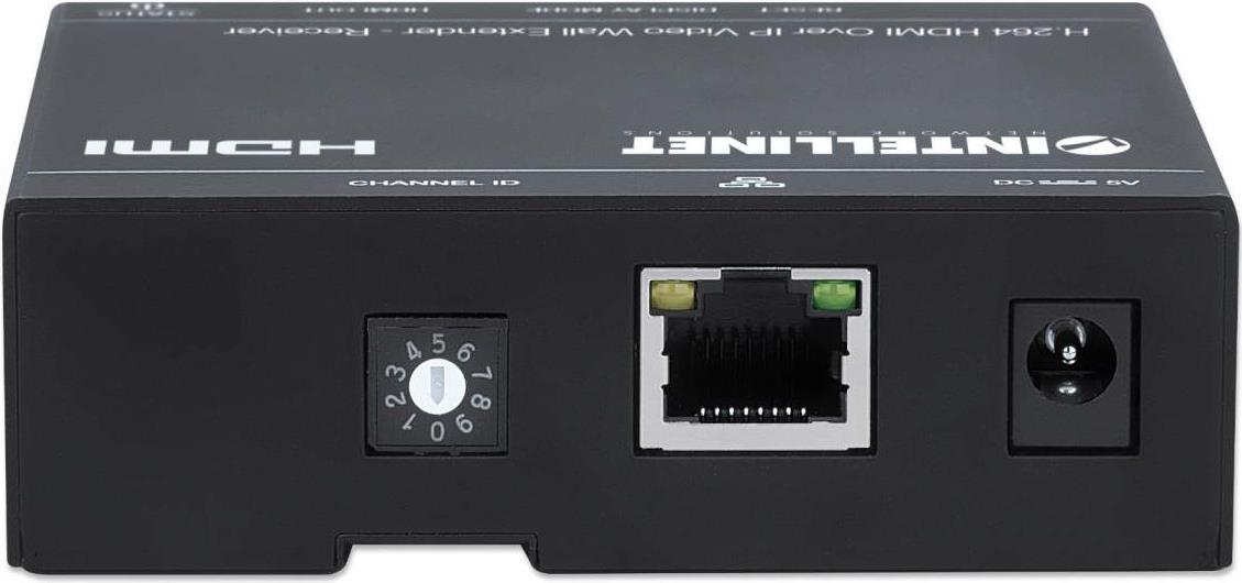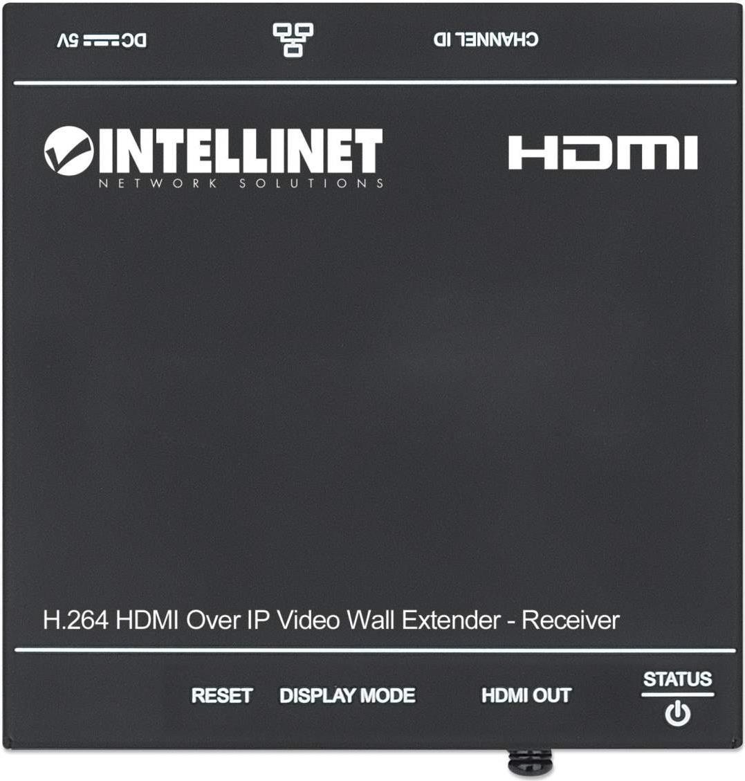 INTELLINET H.264 HDMI Over IP Videowand-Extender, Empfangsmodul Verlängert ein H.264-komprimiertes 1080p@60Hz-Signal auf bis zu 500 m via Netzwerk, Videowand, Unicast- & Multicast-Übertragung, montierbar, schwarz (208345)