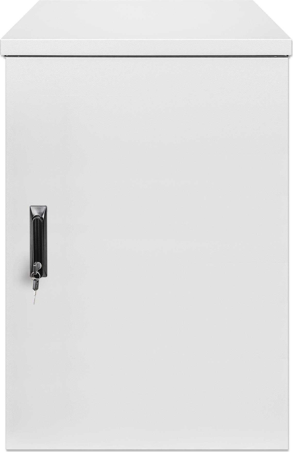 INTELLINET Industrieller IP55 48,30cm (19") Wandverteiler mit integrierten Lüftern, 18 HE 600 mm Tiefe, Kühleinheit mit zwei Lüftern im Dach integriert, staub- und wasserdichtes Gehäuse, montiert, lichtgrau RAL7035 (716123)