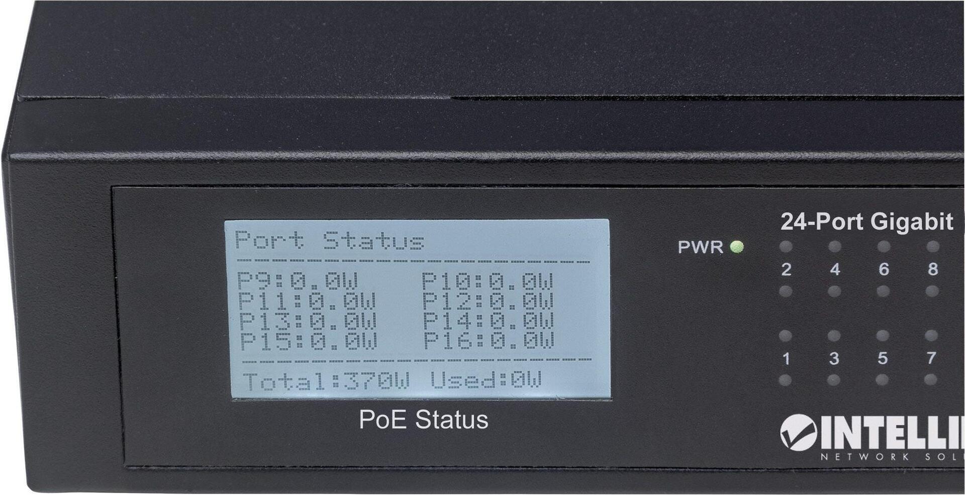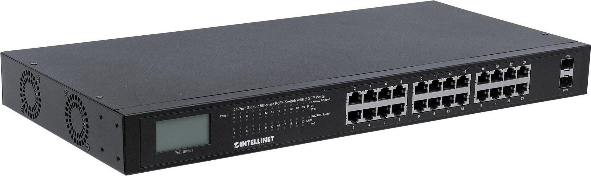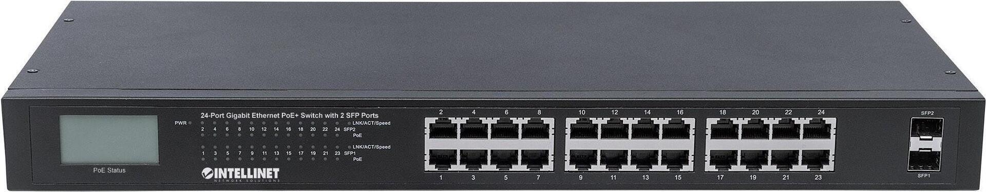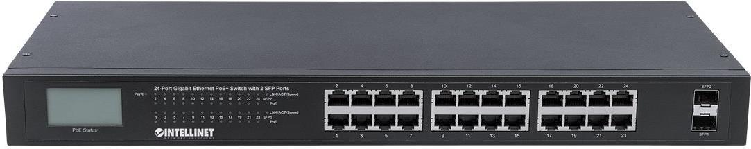 | Produktbeschreibung | Intellinet Gigabit Ethernet PoE+ Switch with 2 SFP Ports and LCD Screen - Switch - 24 Anschlüsse - nicht verwaltet - an Rack montierbar |