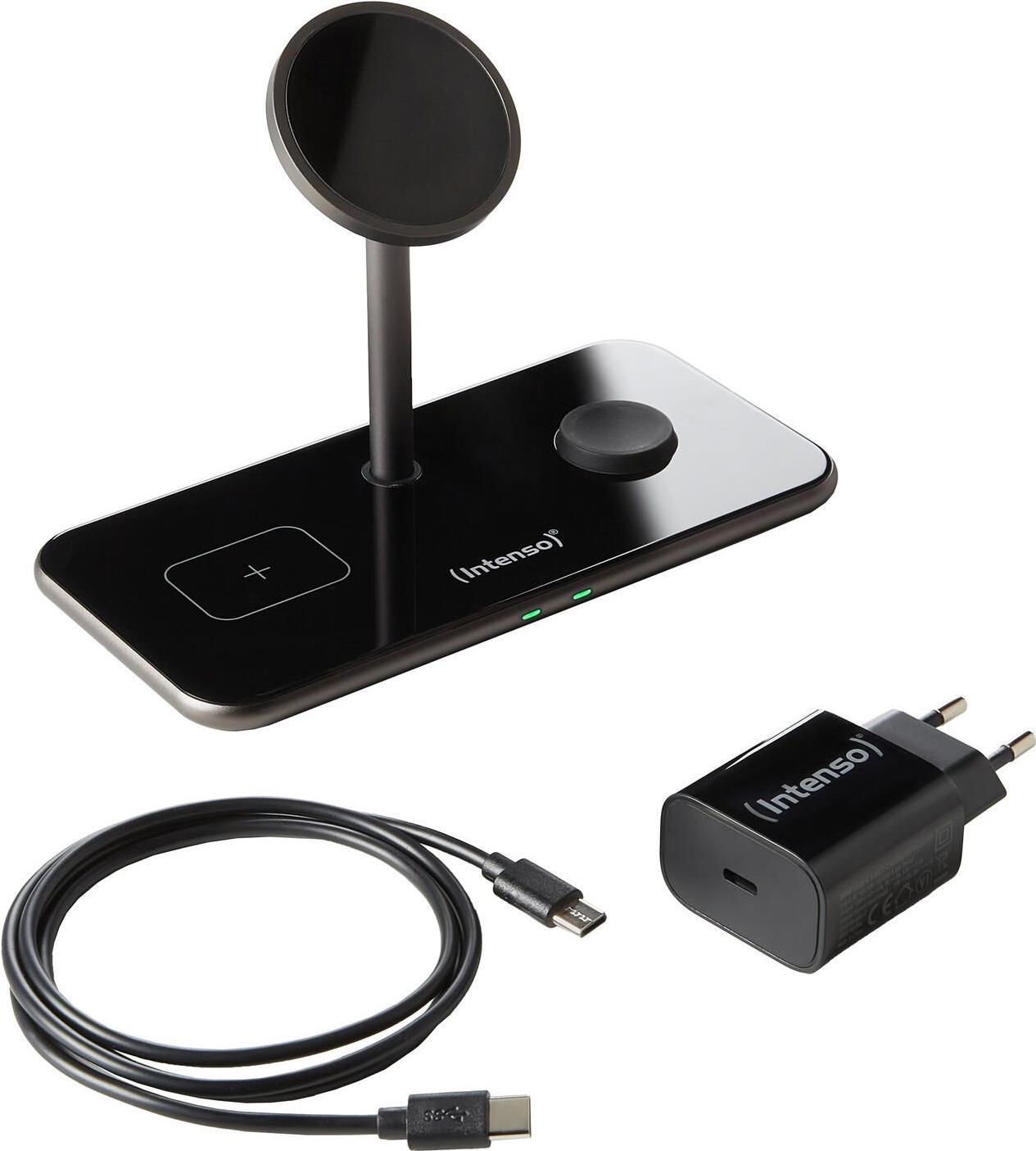 Entdecken Sie mit der kabellosen Ladestation MB13 von Intenso eine Ladelösung. Dieses 3-in-1-Ladegerät wurde speziell für Ihren modernen Lebensstil entwickelt und versorgt Ihr Mobiltelefon, Ihre Smartwatch und Ihre kabellosen Ohrhörer mühelos mit Strom, ohne dass Sie sich mit Kabeln herumschlagen müssen. Die magnetische Fixierungstechnologie sorgt dafür, dass Ihre Geräte sicher an ihrem Platz bleiben und jedes Mal zuverlässig geladen werden. Sicherheit steht bei der Intenso MB13 an erster Stelle. Es ist mit fortschrittlichen Funktionen wie Überhitzungsschutz, Überspannungsschutz und Kurzschlussschutz ausgestattet, die sicherstellen, dass Ihre Geräte beim Laden geschützt sind. Das LED-Display zeigt den Ladestatus klar und deutlich an und sorgt so für zusätzliche Sicherheit. Die Intenso MB13 ist nicht nur funktional, sondern besticht auch durch ihr schlankes Design. Das Aluminiumgehäuse und die Oberfläche aus gehärtetem Glas bieten eine robuste und zugleich elegante Ladelösung, die jeden Raum aufwertet. Ob zu Hause oder im Büro, das Intenso MB13 ist eine Mischung aus Stil und Funktionalität und damit ein unverzichtbares Accessoire für alle Ihre Ladeanforderungen.