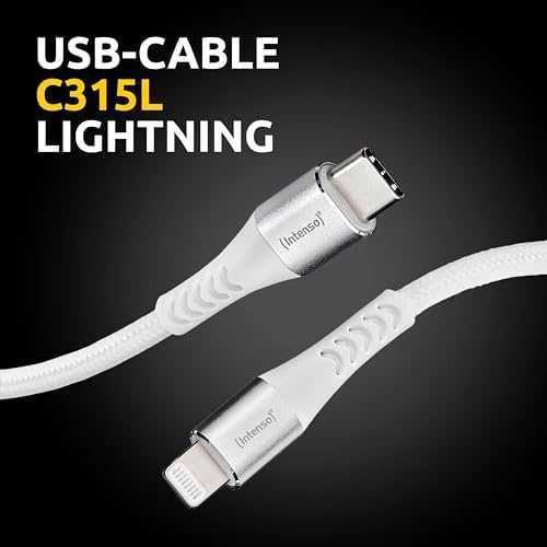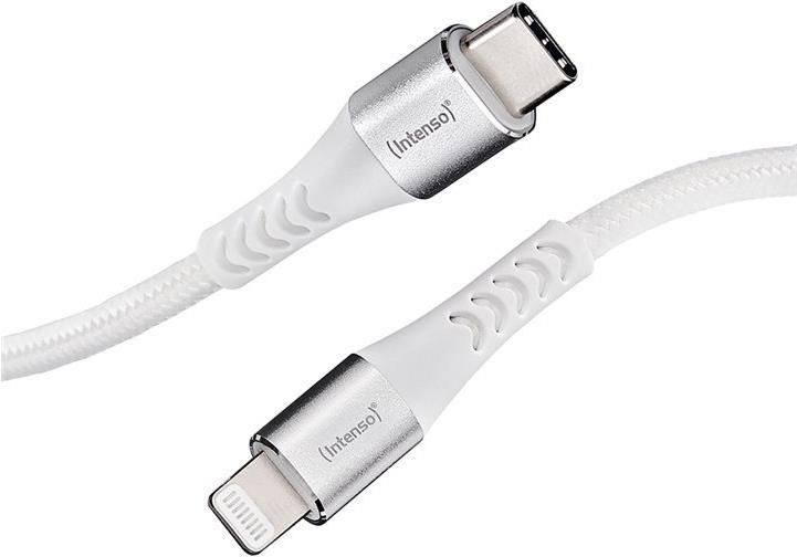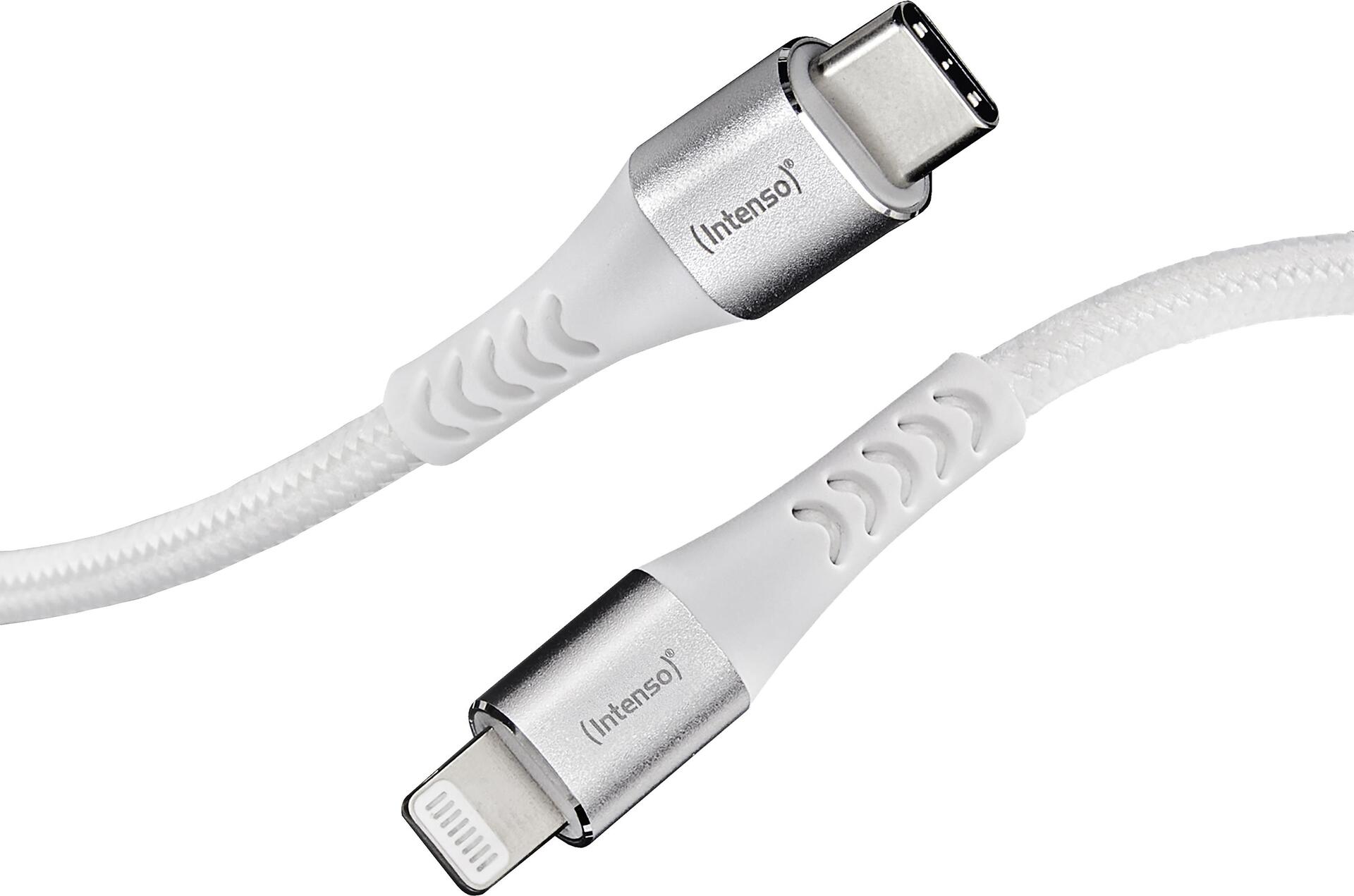 Intenso C315L - Lightning-Kabel - 24 pin USB-C männlich zu Lightning männlich - 1,5m - MFI-zertifiziert - weiß - unterstützt Power Delivery 3,0, geflochtenes Kabel, USB-Stromversorgung (27 W) (7902002)