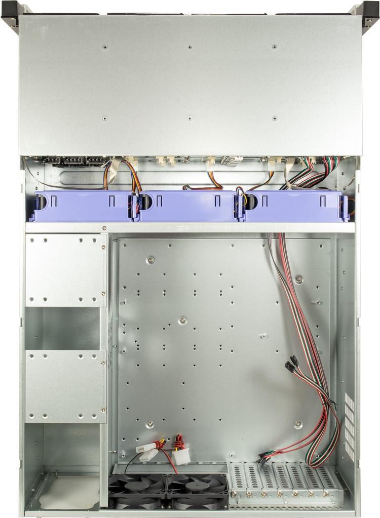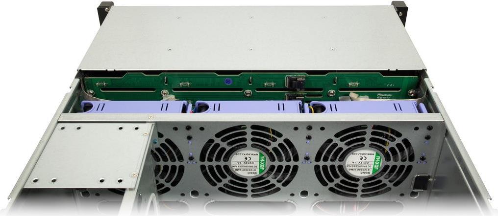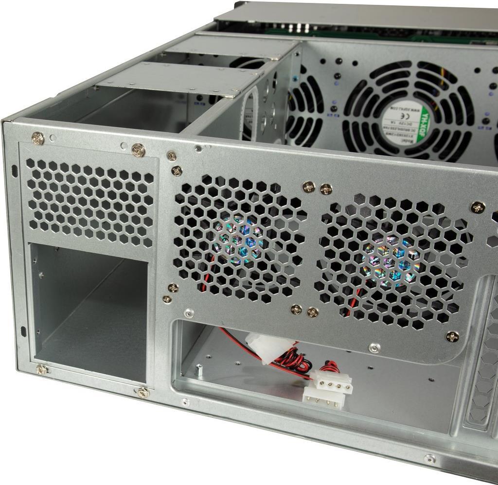 So bietet das IPC 4U 4724 die Möglichkeit maximal 24x 2,5" oder 3,5" Hot-Swap Festplatten, sowie zwei 2,5" interne Festplatten zu verbauen. Das IPC 4U 4724 ist mit fünf serienmäßig eingebauten Lüftern ausgestattet, wovon sich drei 120 mm intern direkt hinter den Laufwerkshalterungen befinden. Zwei weitere 80 mm Lüfter an der Rückseite sorgen zudem zuverlässig für eine optimale Kühlung.