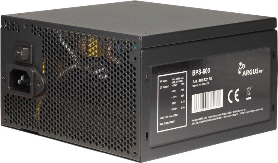 INTER-TECH ArgusNT BPS-600 Netzteil 120mm Luefter aktiv PFC 6xSATA 4x PCI-E 6+2 2x 4+4pin 80+ Bronze 230V EU (88882178)