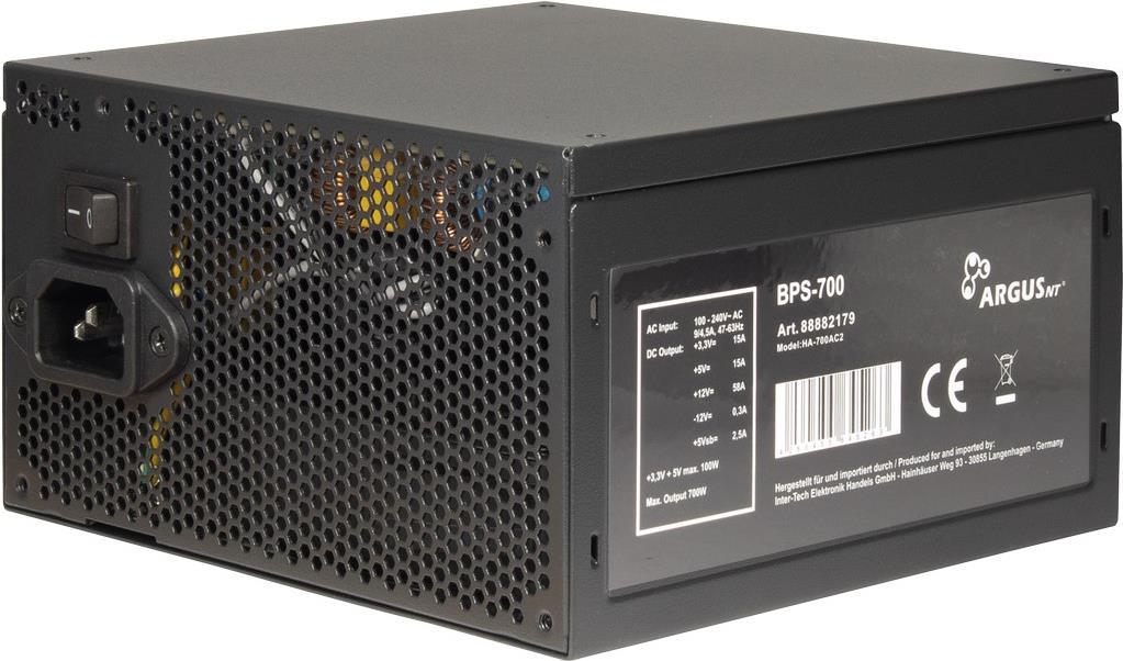 INTER-TECH ArgusNT BPS-700 Netzteil 120mm Luefter aktiv PFC 6xSATA 4x PCI-E 6+2 2x 4+4pin 80+ Bronze 230V EU (88882179)