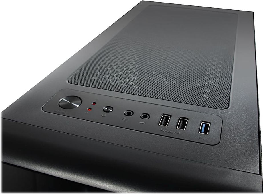 | Systemgehäuse-Merkmale | Kabelführungssystem, Staubfilter unten, Frontplatte aus gehärtetem Glas |