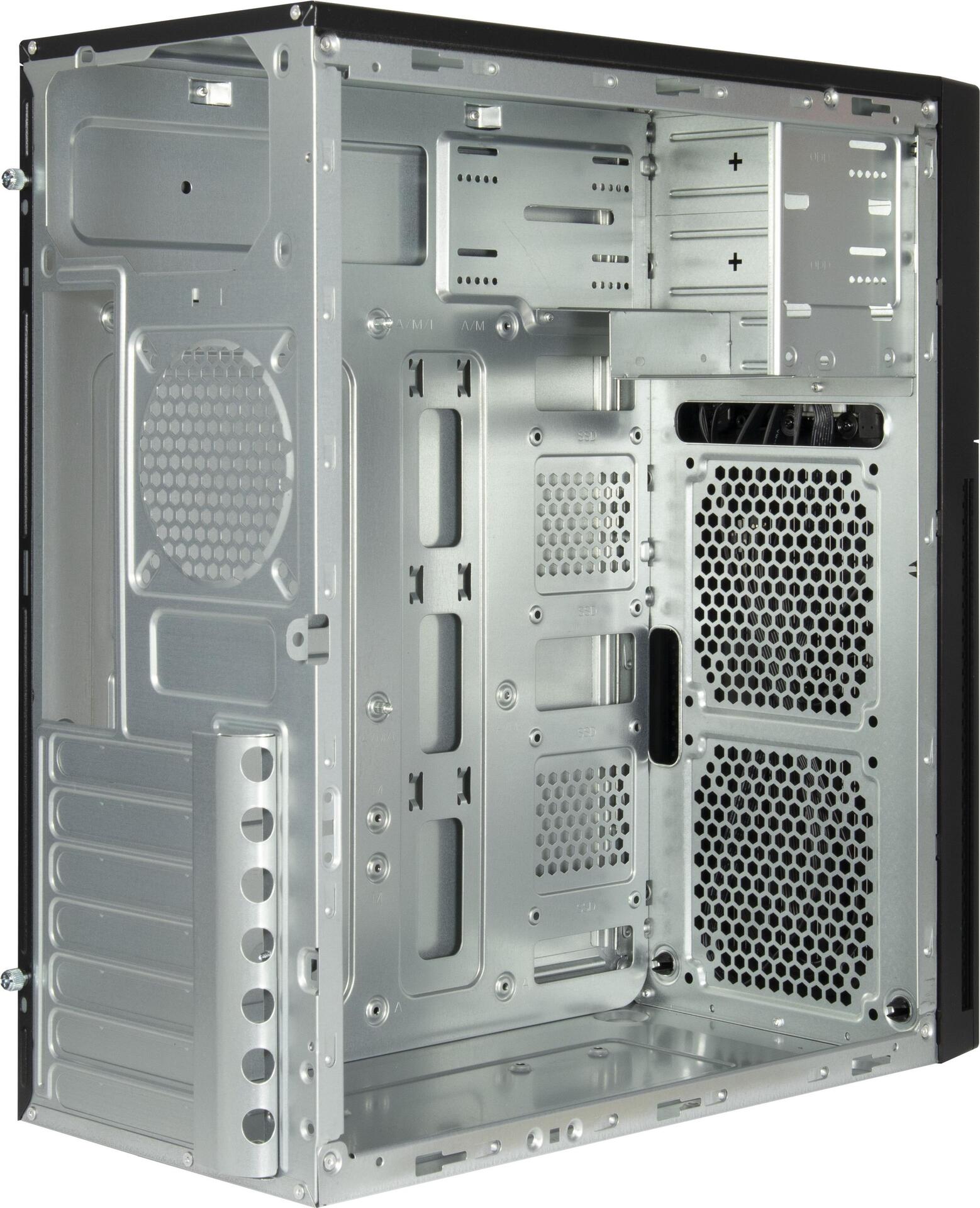Das Inter-Tech IT-2815 Linear Tower-Gehäuse bietet ein effizientes und geräumiges Design, das speziell auf Anwender zugeschnitten ist, die Vielseitigkeit und Komfort suchen. Mit seinem Midi-Tower-Formfaktor verfügt es über vier interne Einschübe und drei von vorne zugängliche Einschübe, wodurch sich die Speicheroptionen leicht organisieren und erweitern lassen. Die Frontblende verfügt über praktische USB- und Audioanschlüsse, die die Zugänglichkeit während der Arbeit oder beim Gaming verbessern. Die Kühlung ist ein wichtiger Aspekt beim Design des IT-2815 Linear, das über insgesamt drei Lüfterhalterungen verfügt, darunter einen 120-mm-Lüfter an der Vorderseite und zwei Optionen an der Rückseite für 80/92-mm-Kühlungslösungen. Diese Konfiguration sorgt für einen optimalen Luftstrom, um die Systemtemperaturen unter Kontrolle zu halten. Es unterstützt eine Vielzahl von Motherboards, darunter ATX, microATX und Mini-ITX, und eignet sich somit für verschiedene Konfigurationen. Das Gehäuse enthält kein Netzteil, sodass Benutzer ihr bevorzugtes Netzteil auswählen können.