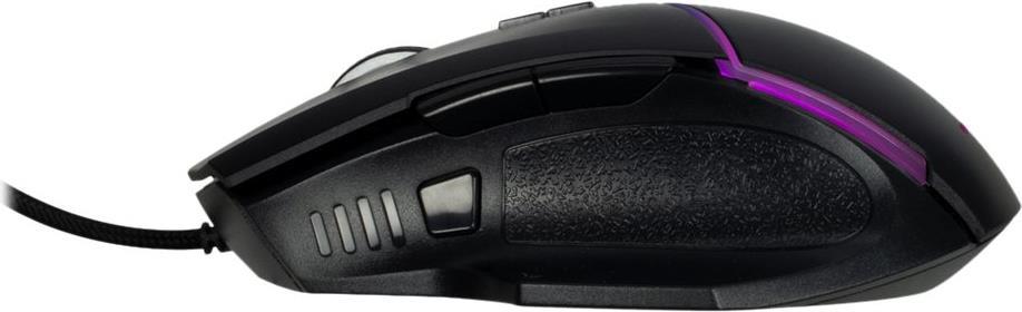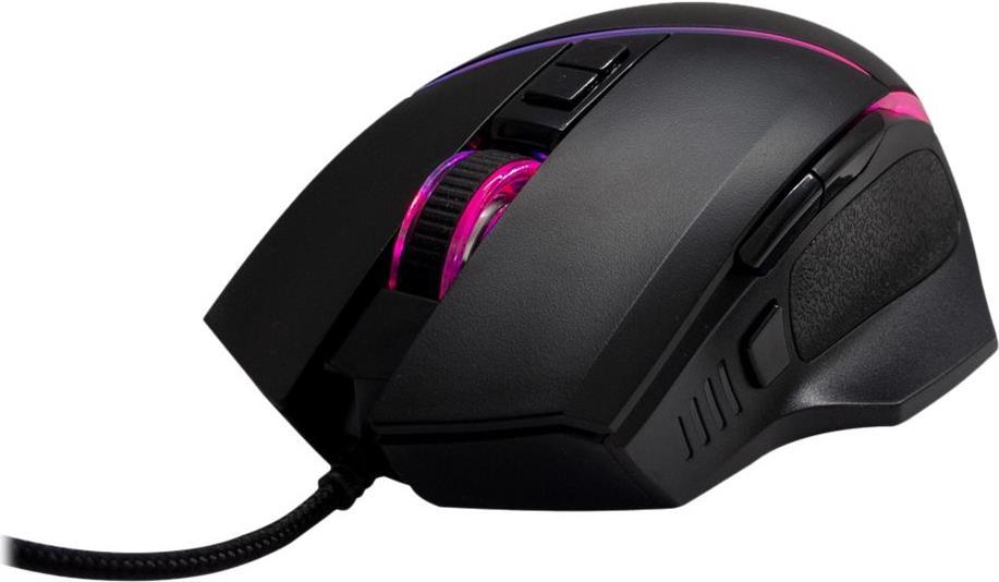 Weitere Features sind die seitlich angebrachten Vorwärts-, Rückwärts- und Spezialtasten sowie die 6 wählbaren RGB-Effekte, die über die Software einstellbar sind. Das 1,50m lange USB-Kabel mit integriertem Ferritkern, macht unabhängig von Batterien und sorgt für einen störungsfreien Spielbetrieb. Hochwertige Klickschalter bieten zudem eine hohe Lebensdauer von weit über 10.000.000 Klicks.
