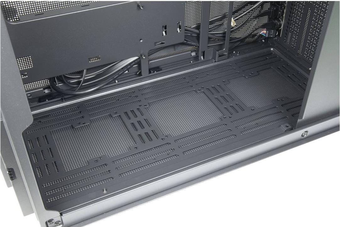 | Kühlsystem | Unten: 120 mm Lüfterhalterung x 3 Unten: 140 mm Lüfterhalterung x 2 Unten: 120/140 mm Lüfterhalterung x 2 Oberseite: 120 mm Lüfterhalterung x 3 Oberseite: 140 mm Lüfterhalterung x 2 Oberseite: 120/240 mm Lüfterhalterung x 2 |