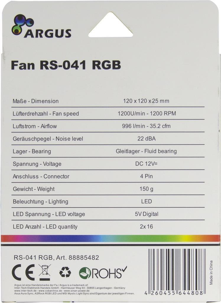 Inter-Tech RS-041 RGB Computergehäuse Ventilator 12 cm Schwarz (88885482)