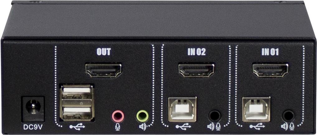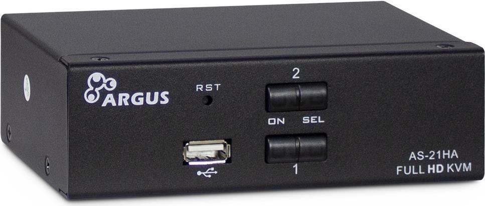 Der Anschluss des KVM erfolgt per USB (Tastatur / Maus), 2x 3,5mm Klinke (Audio Mic/Line) und HDMI-Monitor über die zwei mitgelieferten Anschlusskabel, an die Computer. Über den zusätzlichen USB-Port in der Front lassen sich zudem externe Datenträger, wie z.B. USB-Sticks, anschließen und verwalten.Produkttext[/head]Der KVM AS-21HA HDMI ist ein günstiger 2-Port KVM-Switch mit automatischem Audioumschalter für den Desktopbereich.Der Anschluss des KVM erfolgt per USB (Tastatur / Maus), 2x 3,5mm Klinke (Audio Mic/Line) und HDMI-Monitor über die zwei mitgelieferten Anschlusskabel, an die Computer.Über den zusätzlichen USB-Port in der Front lassen sich zudem externe Datenträger, wie z.B. USB-Sticks, anschließen und verwalten.[head]Hauptmerkmale