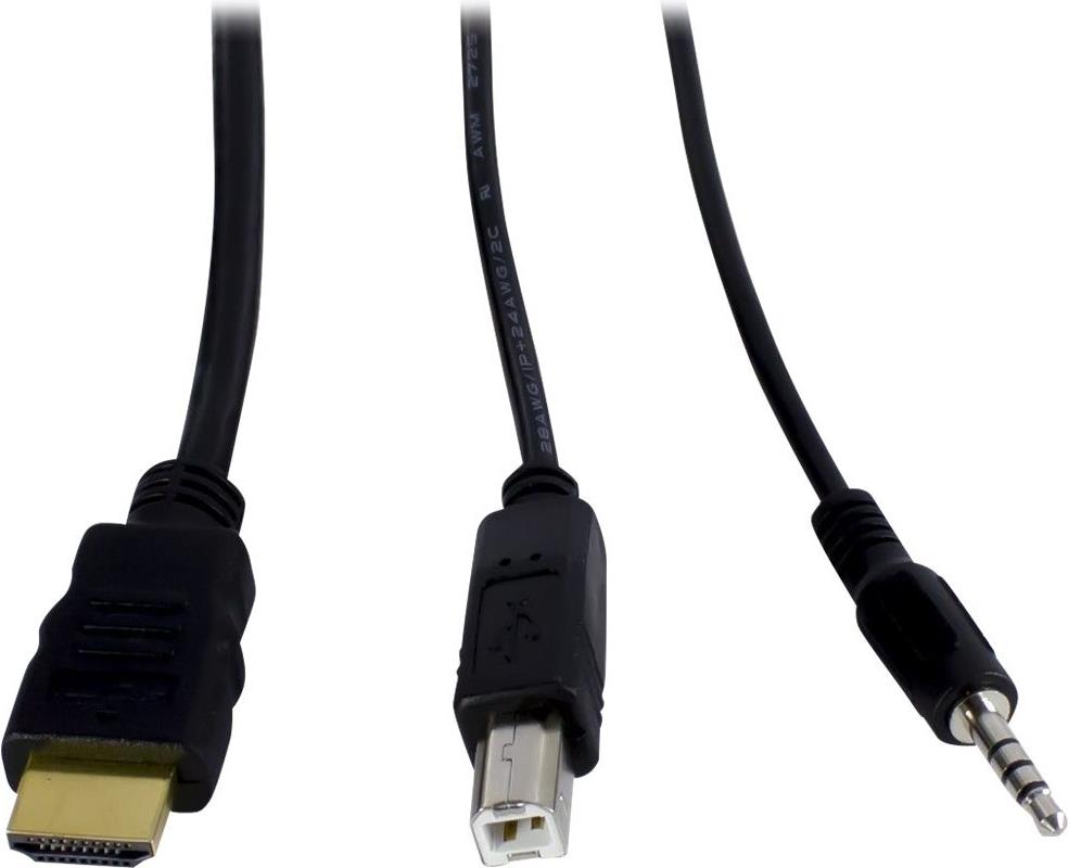 Der Anschluss des KVM erfolgt per USB (Tastatur / Maus), 2x 3,5mm Klinke (Audio Mic/Line) und HDMI-Monitor über die zwei mitgelieferten Anschlusskabel, an die Computer. Über den zusätzlichen USB-Port in der Front lassen sich zudem externe Datenträger, wie z.B. USB-Sticks, anschließen und verwalten.
