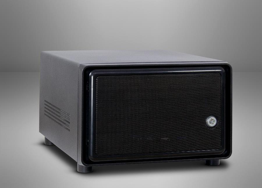 Das SC-2100 ist ein Gehäuse für Mini-ITX Mainboards mit einem zweifach 2,5"/3,5" Hot-Swap-Rahmen in der Front, welcher sich hinter einer abschließbaren Fronttür befindet.