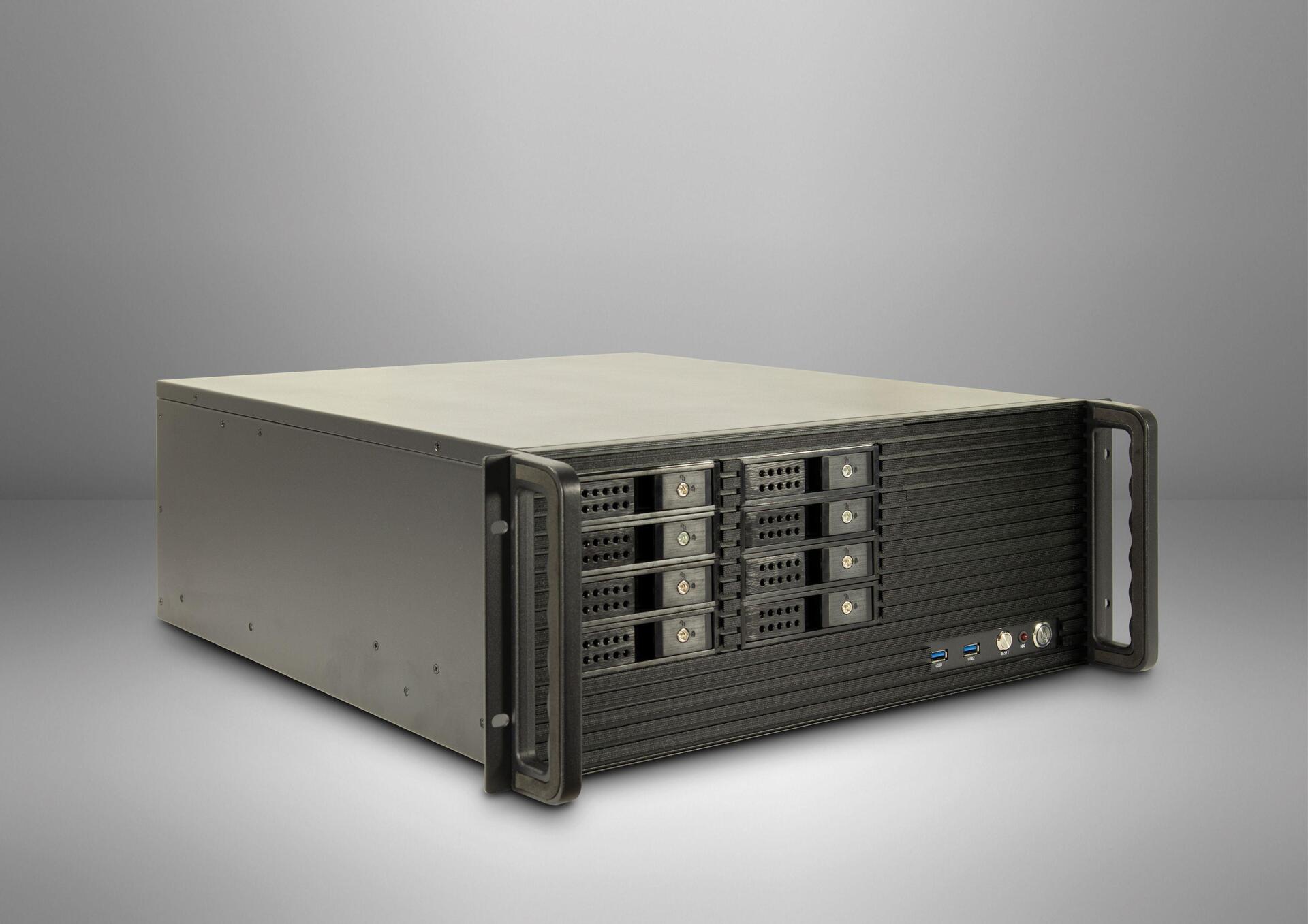 Das IPC 4U-4508 ist ein perfektes Gehäuse für ein kostengünstiges Mini Server System. Durch die Verwendung hochwertiger Materialien in Kombination mit einer exzellenten Verarbeitung hat Inter-Tech ein variables und zuverlässiges Industriegehäuse geschaffen.So unterstützt das 4U-4508 ATX oder PS/2 redundante Netzteile, bis zu acht 2,5\"/3,5\" Hot-Plug Festplatten, zwei interne 2,5\" und zwei externe 5,25\" Geräte und Mainboards bis E-ATX Größe.Außerdem verfügt das Gehäuse über zwei 80-mm-Lüfter, Platz für zwei weitere 80-mm-Lüfter und zwei USB-3.0-Frontanschlüsse.