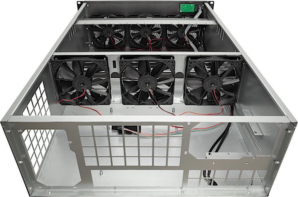 INTER-TECH IPC 4w40 Mining-Rack 48,26cm 48,30cm (19") 4HE IPC-Gehaeuse keine ext/int Laufwerke Montagleisten fuer GraKa 6x 120 Luefter (88887374)