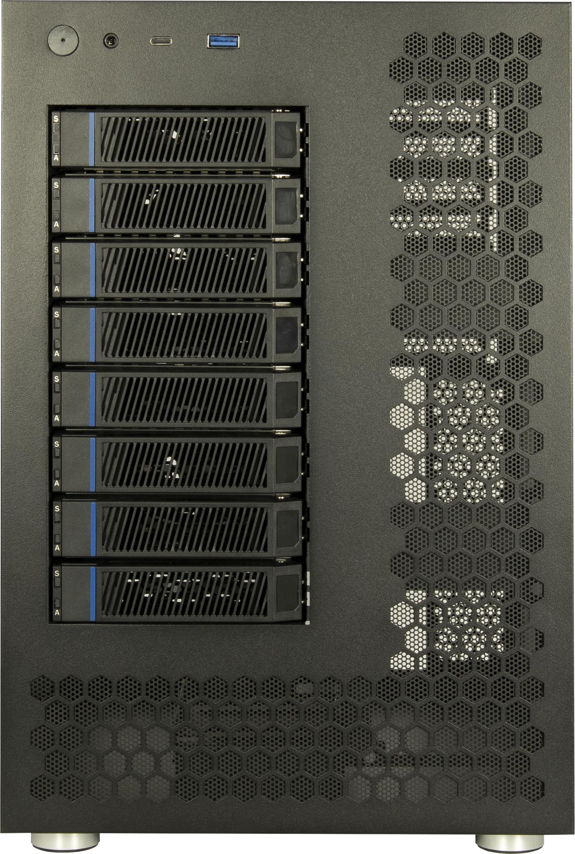 Mit 8 Hot-Swap-Einschüben, die sowohl 2,5"- als auch 3,5"-Laufwerke aufnehmen können, bietet das NAS-8 umfangreiche Erweiterungsmöglichkeiten, die eine einfache Verwaltung und Skalierung Ihrer Speicherkapazität ermöglichen. Die Integration von USB 3.2 Gen 1-Schnittstellen mit Typ-A- und Typ-C-Anschlüssen bietet schnelle, flexible Anschlussmöglichkeiten, die schnelle Datenübertragungen und einen effizienten Zugriff auf Ihre gespeicherten Informationen ermöglichen. Das perforierte Design trägt nicht nur zur Ästhetik bei, sondern sorgt auch für eine bessere Luftzirkulation, damit Ihr System optimale Betriebstemperaturen beibehält. Ganz gleich, ob Sie ein neues System aufbauen oder ein bestehendes aufrüsten möchten, das NAS-8 erfüllt mit seinen robusten Funktionen und seiner soliden Leistung Ihre Speicheranforderungen.