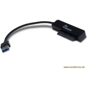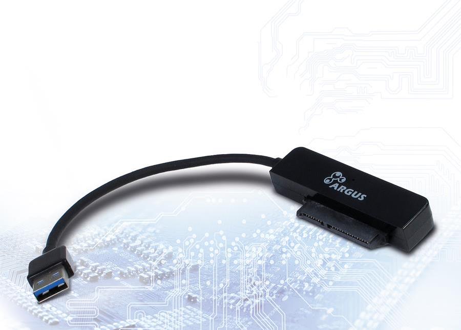 Der Anschluss erfolgt über SATA Daten/Strom auf USB 3.0 Stecker Typ A. Als ideale Ergänzung zu den Argus 2,5" Schutzboxen.
