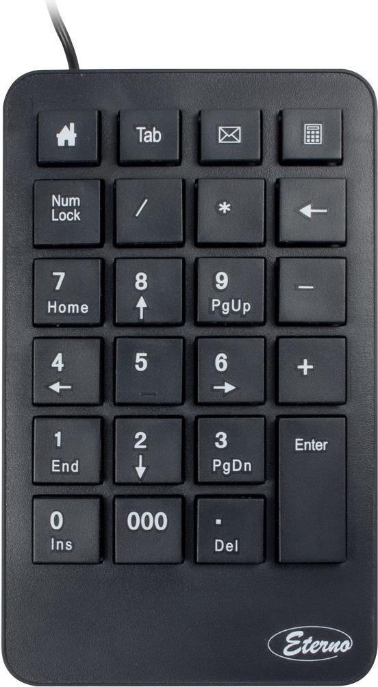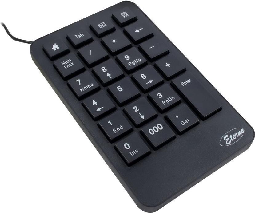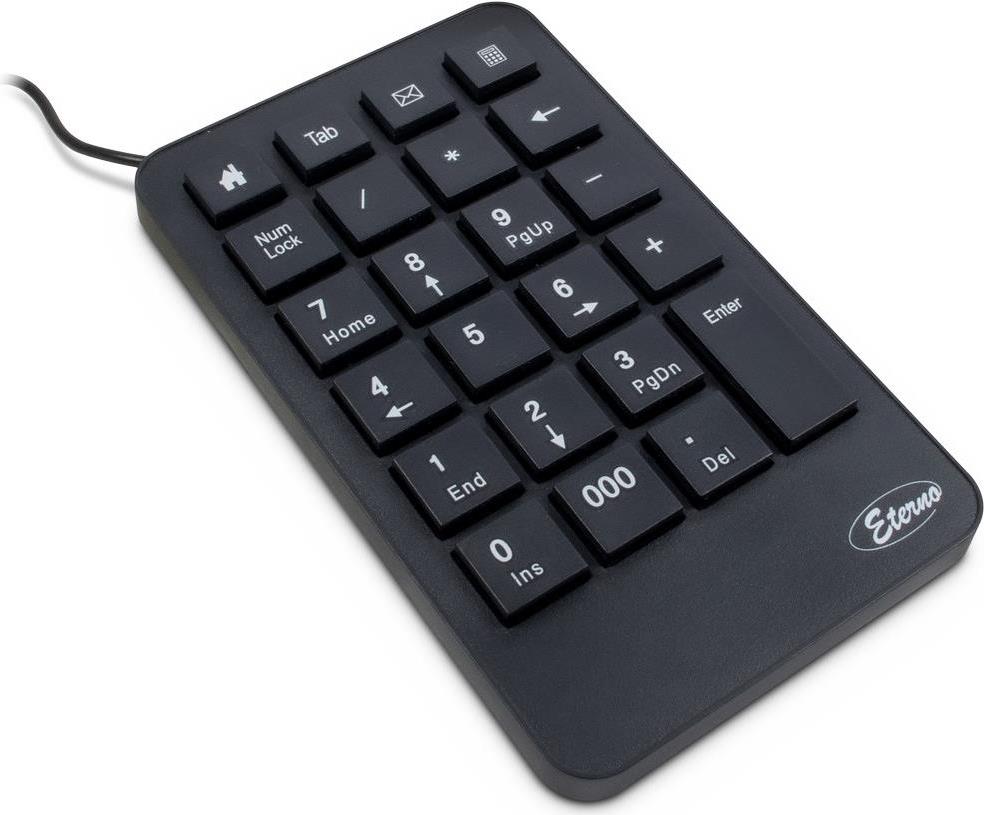 Das KB-120 Numpad bietet mit 23 Tasten einen vollumfänglichen Nummernblock, wie man ihn bei fast jeder Standard-Tastatur vorfindet. So kann man das Numpad bei fehlendem Nummernblock (z.B. bei Tablets oder Notebooks) ergänzen oder einfach zusätzlich zur angeschlossenen Standard-Tastatur verwenden.Zusätzlich zum Ziffernblock sind Funktionstasten für Browser, E-Mail und Taschenrechner vorhanden, die einen Schnellzugriff ermöglichen. Mit den separaten Tasten für TAB, Backspace und 000 stehen weitere Zusatztasten zur Verfügung.Hauptmerkmale
