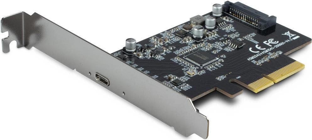 Mit der KC-008 von Argus rüsten Sie im Handumdrehen Ihren PC auf den neusten USB-Standard auf. Die Karte wird lediglich in einen freien PCIe x4 Port gesteckt und zusätzlich mit einem S-ATA Stromanschluss vom Netzteil mit Strom versorgt und schon verfügt Ihr PC über einen USB 3.2 Gen 2x2 Type C Anschluss, der eine theoretische Transferrate von bis zu 20 GBit/s zur Verfügung stellen kann.