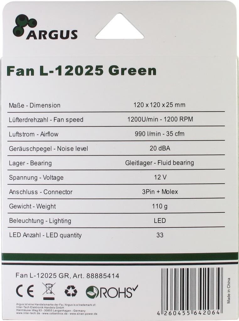 Inter-Tech Argus L-12025 - Gehäuselüfter - 120 mm - grün (88885414)