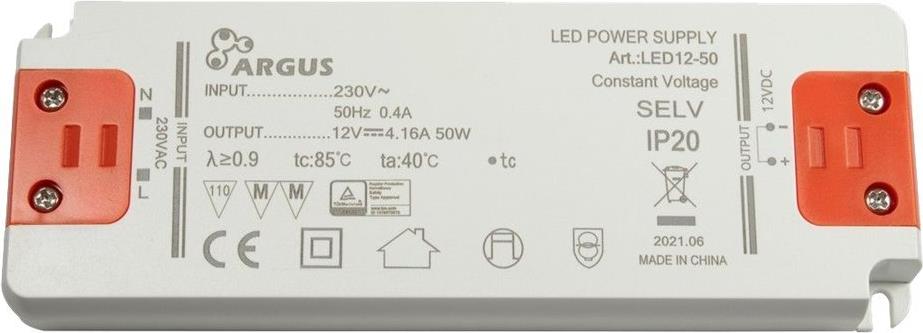 Der LED12-50 ist ein 50 W starker LED Driver mit 12 V Ausgangsspannung bei 4160 mA. Er ist ausgestattet mit fünf Schutzschaltungen zur Absicherung der angeschlossenen Komponenten, hat eine MTBF von 100.000 Stunden und ist mit der Schutzklasse IP20 zertifiziert.