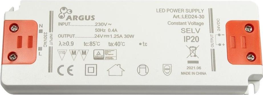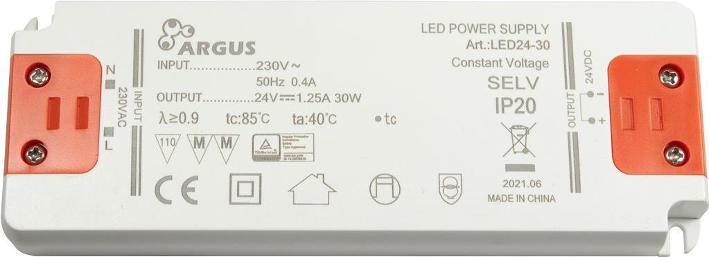 Der LED24-30 ist ein 30 W starker LED Driver mit 24 V Ausgangsspannung bei 1250 mA. Er ist ausgestattet mit fünf Schutzschaltungen zur Absicherung der angeschlossenen Komponenten, hat eine MTBF von 100.000 Stunden und ist mit der Schutzklasse IP20 zertifiziert.