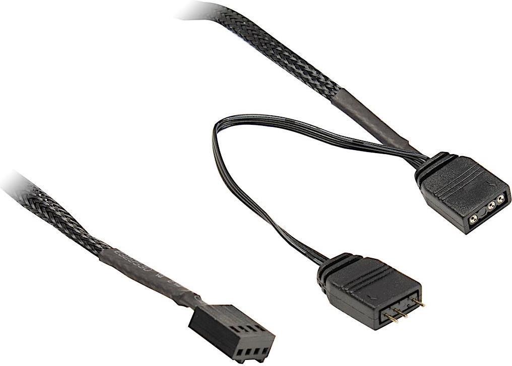 Der Anschluss erfolgt temperaturgeregelt über den 4-Pin PWM-Anschluss am Mainboard und wird zusätzlich noch am 3-Pin 5V RGB-Header des Mainboards angeschlossen, welcher für die synchronen Farbwechsel aller angeschlossenen Komponenten zuständig ist.