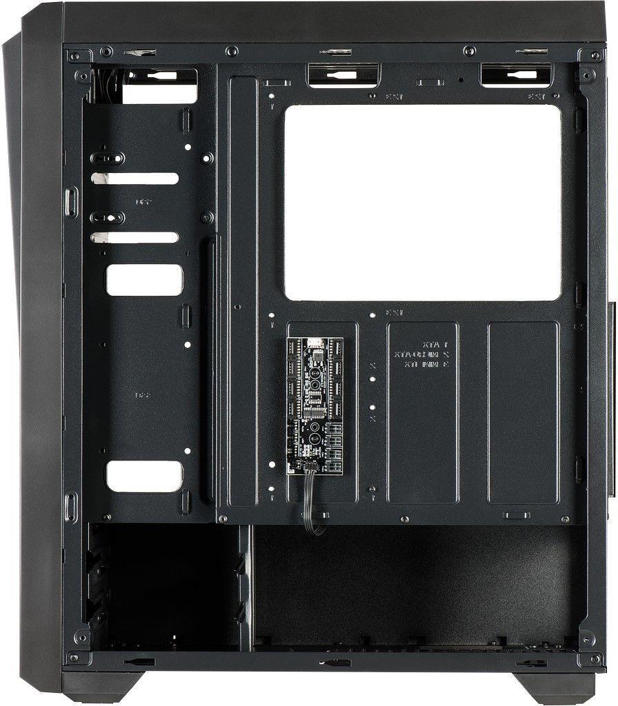 Ein leicht getöntes Seitenteil aus Tempered Glass sowie zwei RGB LED-Streifen, die sich über den gesamten Deckel und Vorbau des Gehäuses spannen, machen aus dem S-3901 den idealen Kandidaten für ein System mit aufwendiger LED-Beleuchtung. Dazu trägt nicht nur der serienmäßig an der Rückwand verbaute 120 mm RGB LED-Lüfter bei, sondern vor allem die digitale 5V RGB-Steuerplatine, an der Platz für bis zu 7 weitere RGB-Lüfter ist, die alle samt über die RGB-Mainboardsteuerung verwaltet werden können. Platz für bis zu vier weitere 3Pin Lüfter runden die Anschlussvielfalt der integrierten Platine ab.