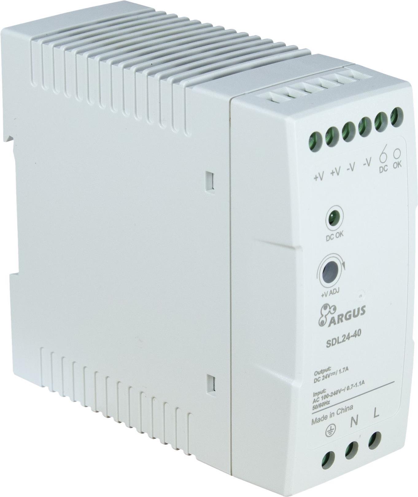 Preiswertes und kompaktes DIN-Schienen-Netzteil mit 24 V = Ausgangsspannung und 40 W Ausgangsleistung.