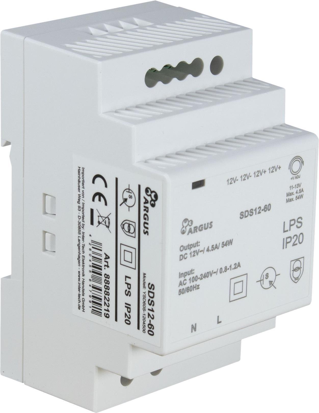 INTER-TECH SDS 12-60 Hutschienennetzteil 12V Ausgangsspannung 60W Leistung (88882219)